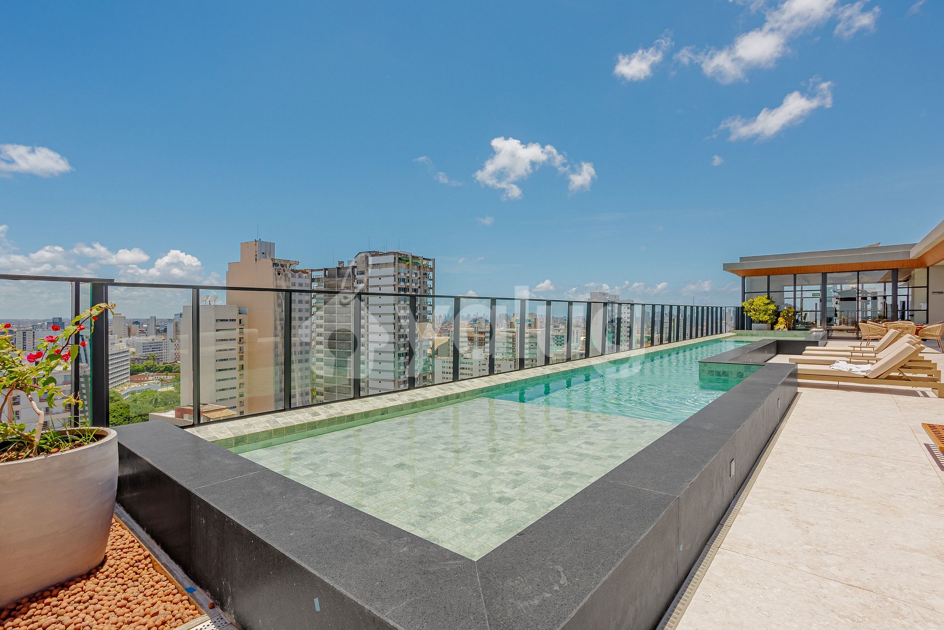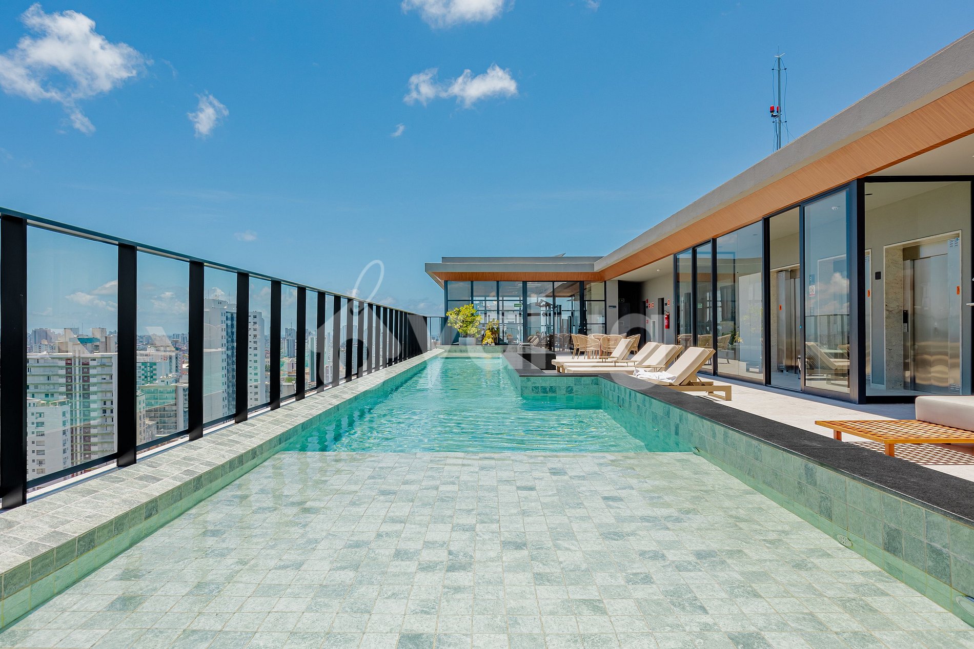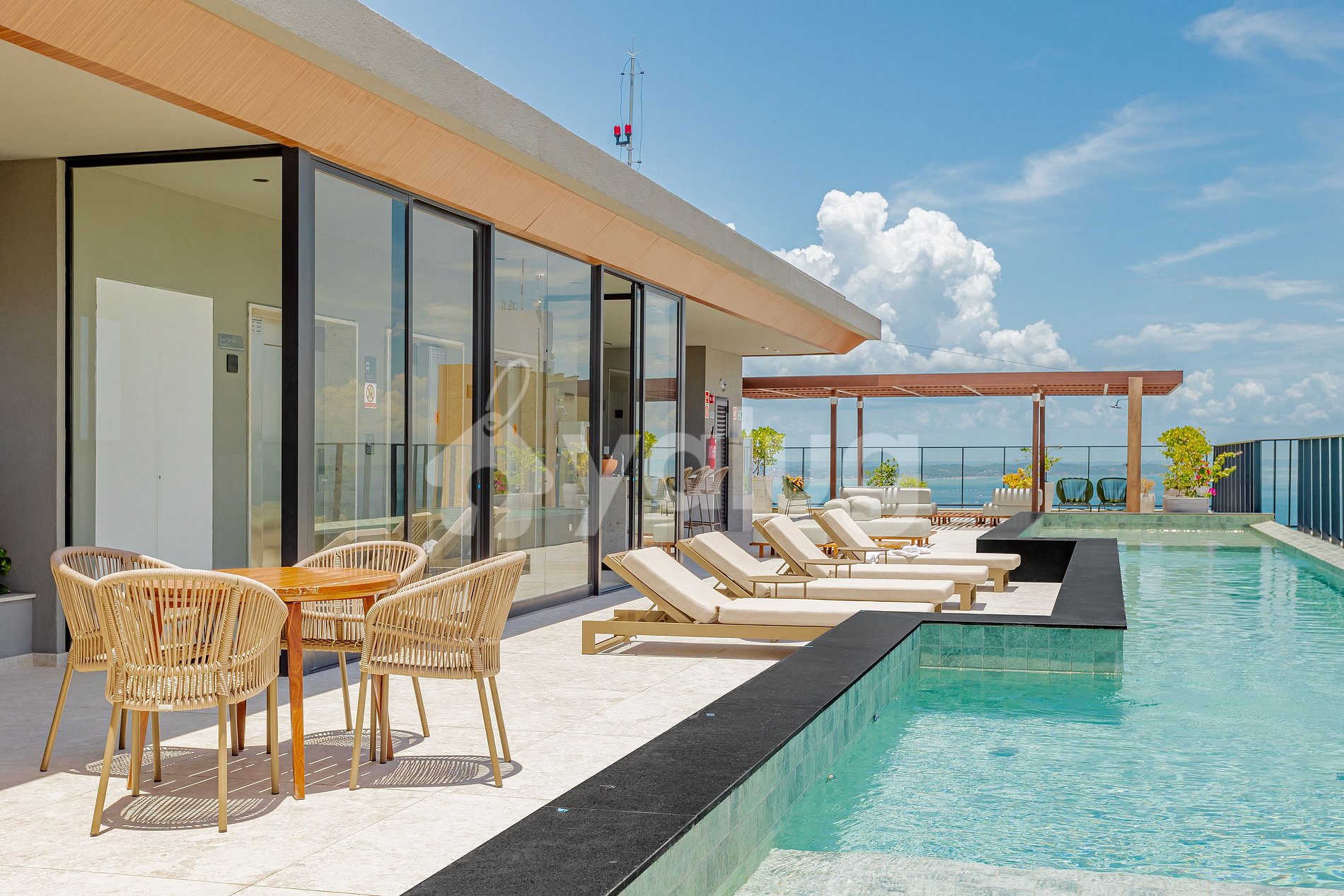 El condominio Alive cuenta con una gran área de ocio con gimnasio, piscina, muebles de exterior e increíbles vistas a la Bahía de Todos os Santos.