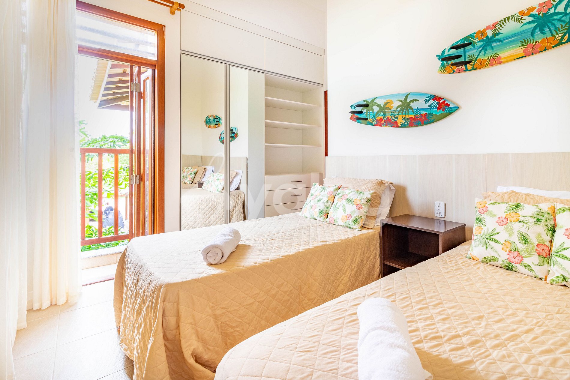 Suite 2 (superior): 2 camas individuales, cortinas blackout, aire acondicionado split, ventilador de techo, closet y smart TV.