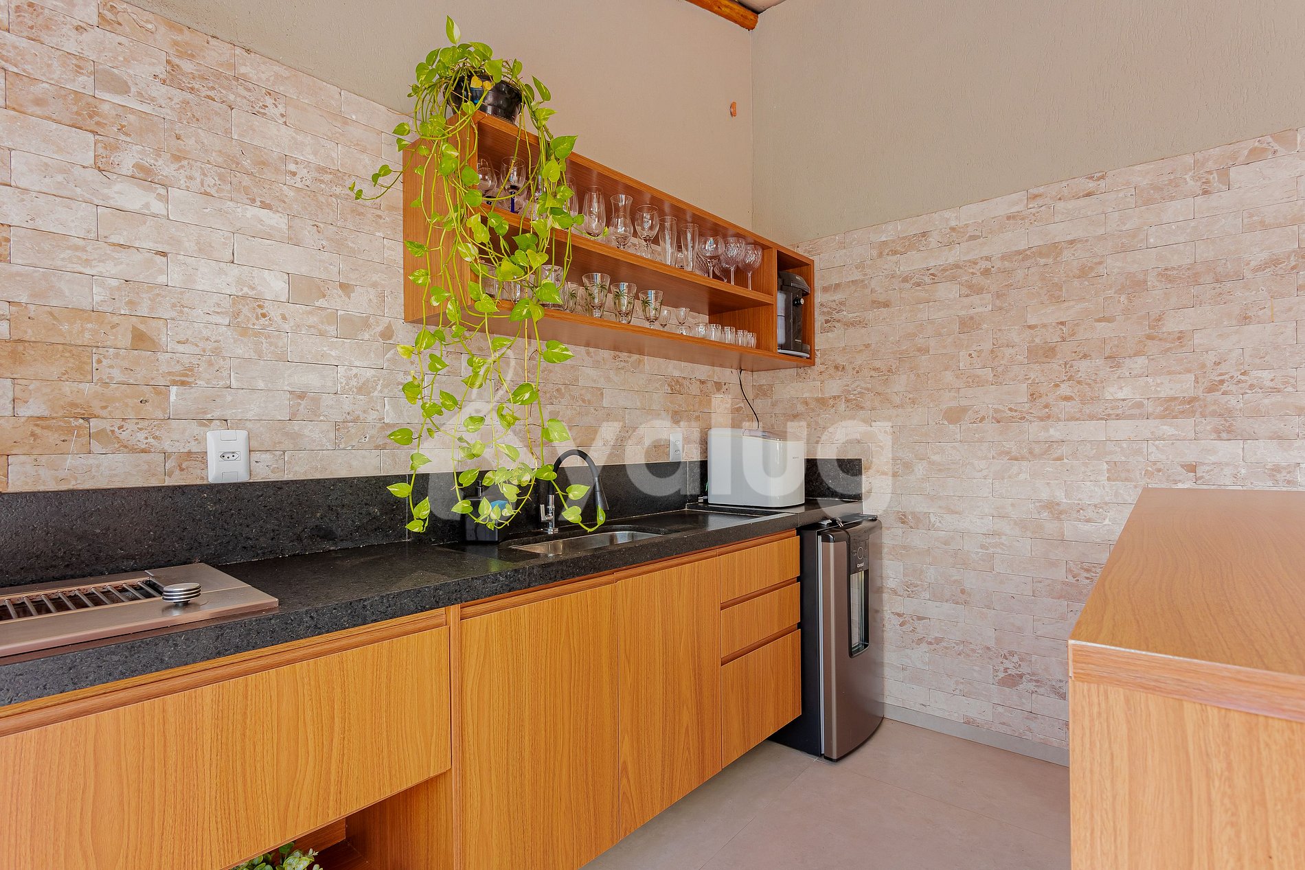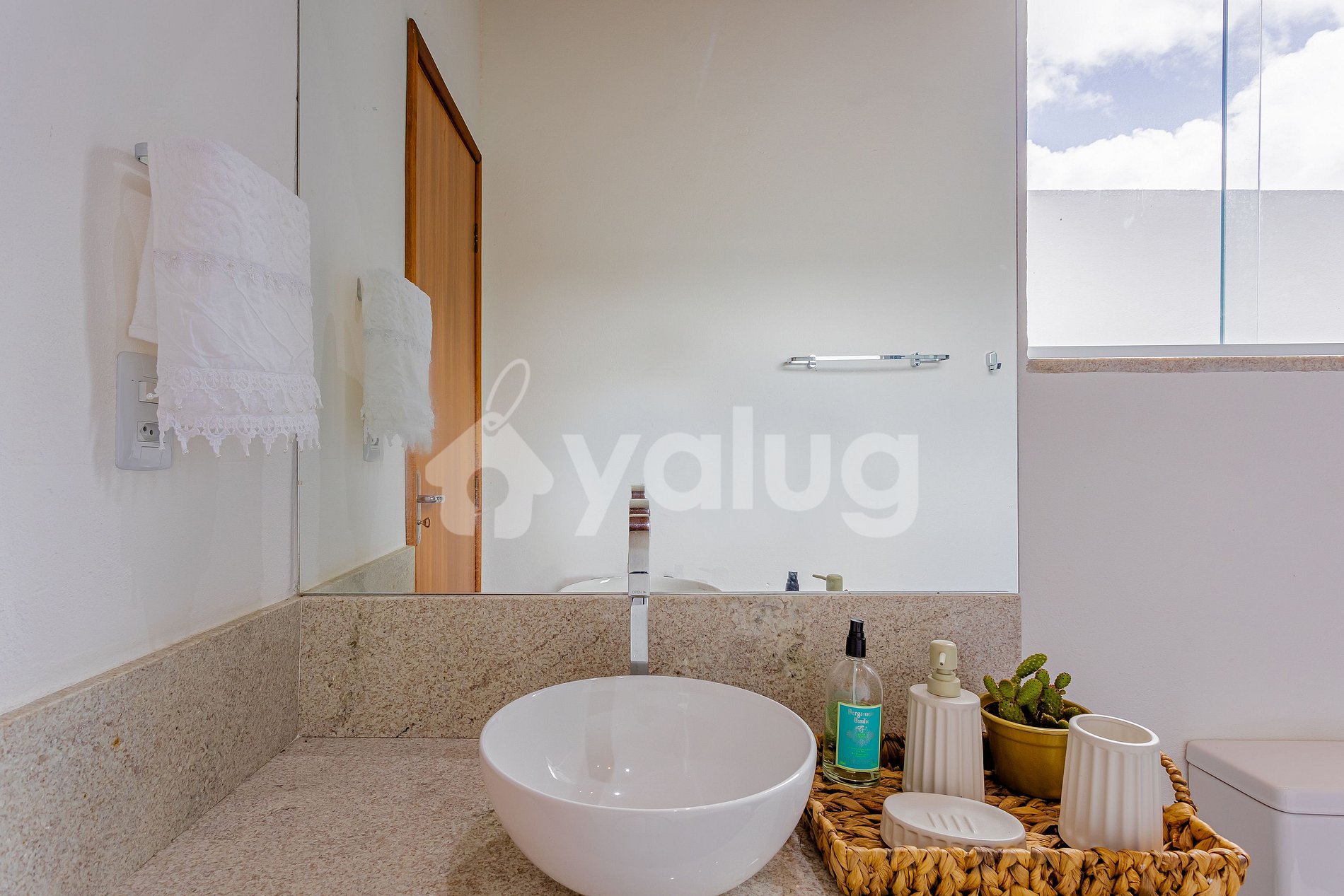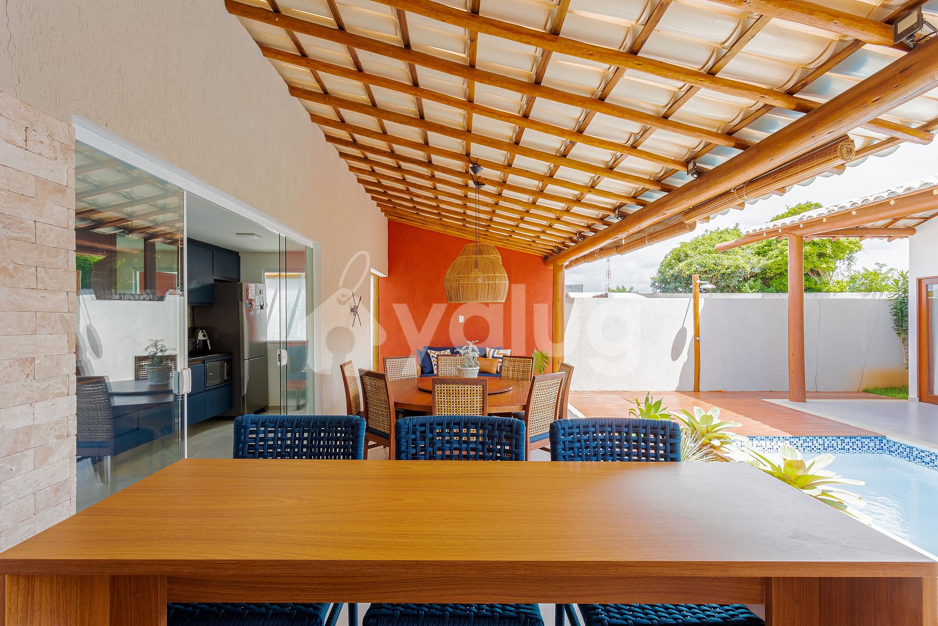 A pesar de no estar en un condominio, la casa está en un área con vigilancia las 24 horas, brindando seguridad! Cuenta con 3 suites con aire acondicionado, wi-fi, sala y cocina. En la zona exterior, espacio gourmet con barbacoa, piscina y jardín!