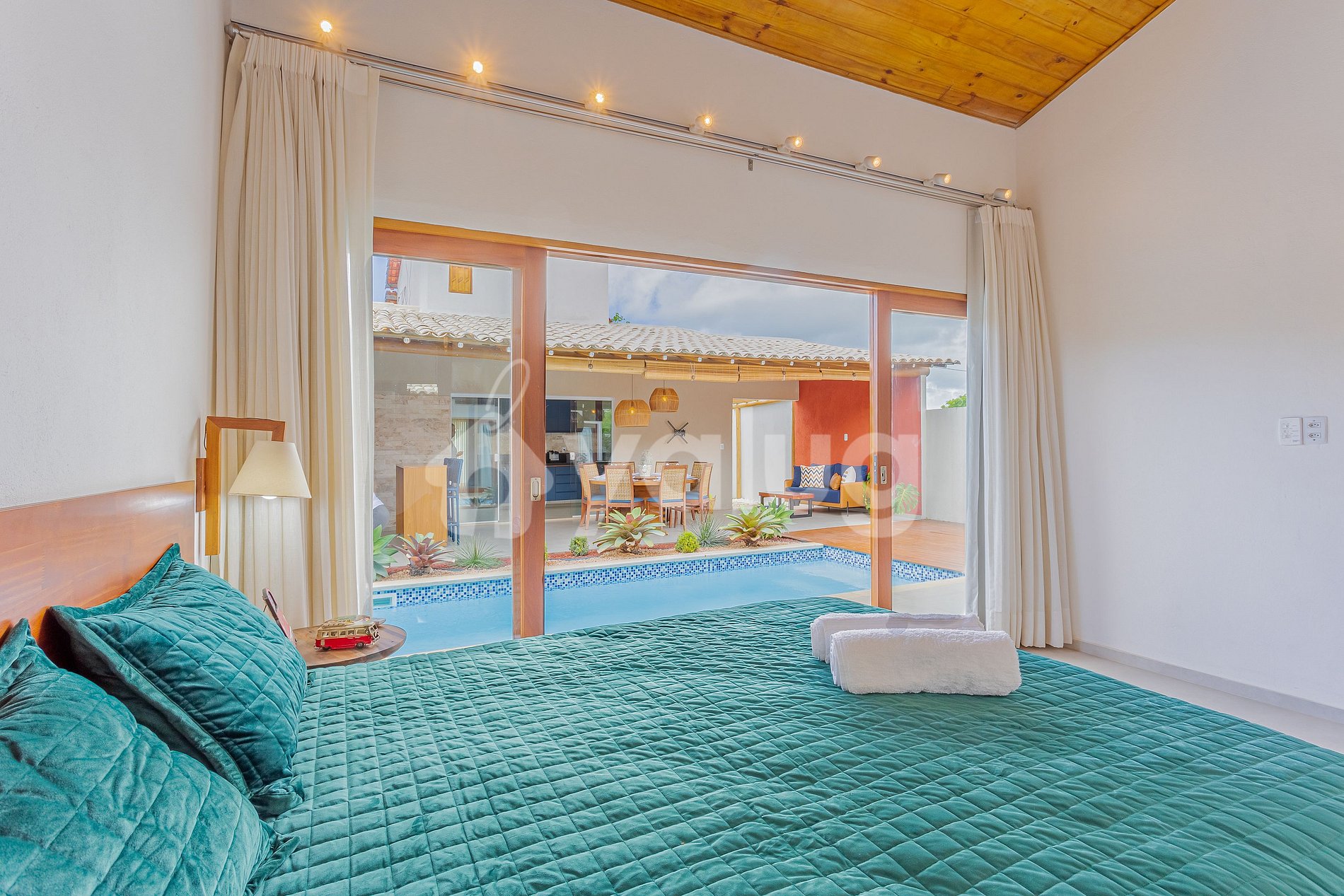 A pesar de no estar en un condominio, la casa está en un área con vigilancia las 24 horas, brindando seguridad! Cuenta con 3 suites con aire acondicionado, wi-fi, sala y cocina. En la zona exterior, espacio gourmet con barbacoa, piscina y jardín!