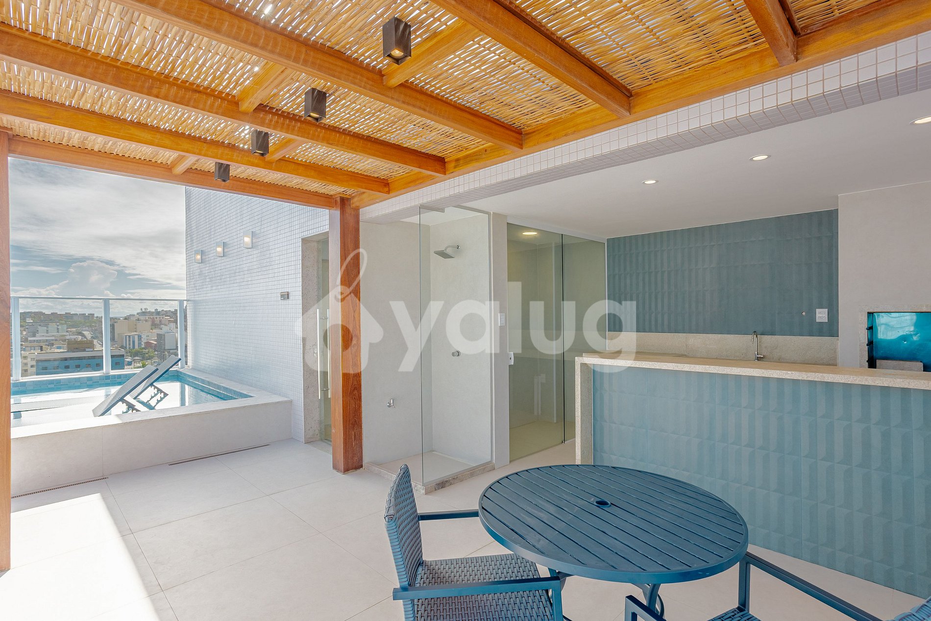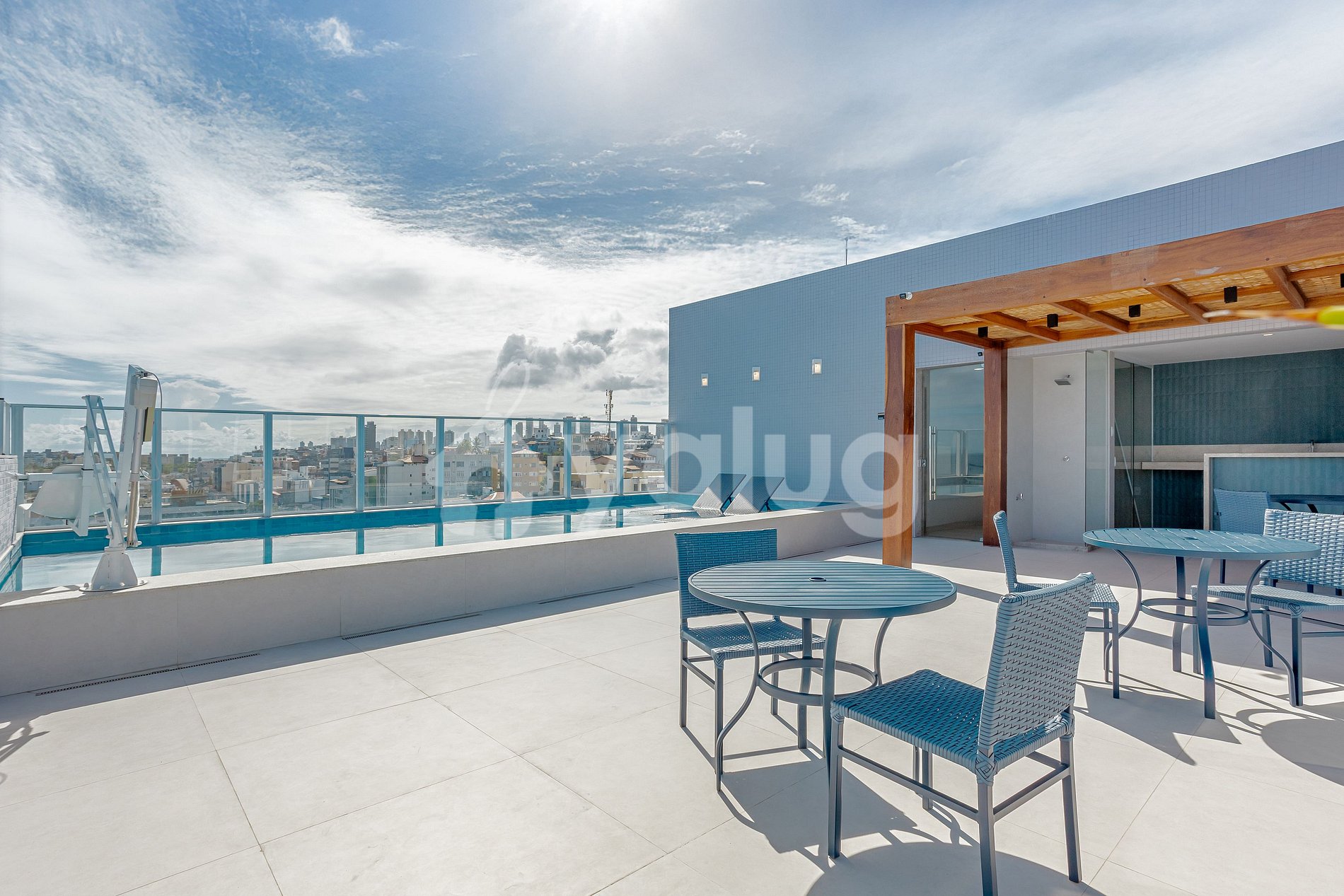 ¡El área gourmet, ubicada en la terraza del edificio, tiene una vista privilegiada de la región y del mar! Además cuenta con una excelente piscina, estupenda pista polideportiva y cocina compartida.