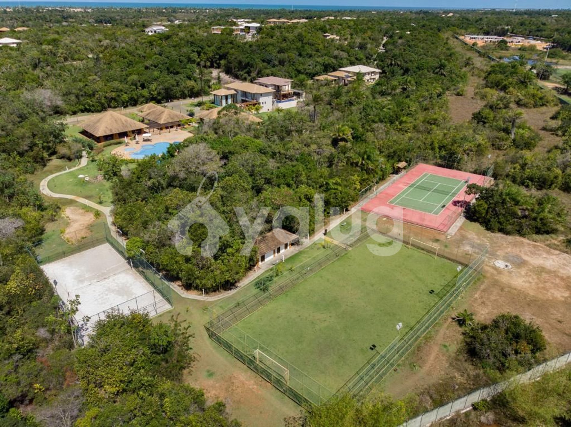 O Condomínio dispõe de 2 piscinas, quadra de tênis, quadra de beach tennis, campo de futebol, área verde (reserva da Mata Atlântica) e portaria 24 horas. Você também conta com serviço de transfer gratuito disponível de 6 a domingo para acesso à cidade e à praia. Horários conforme disponibilidade.