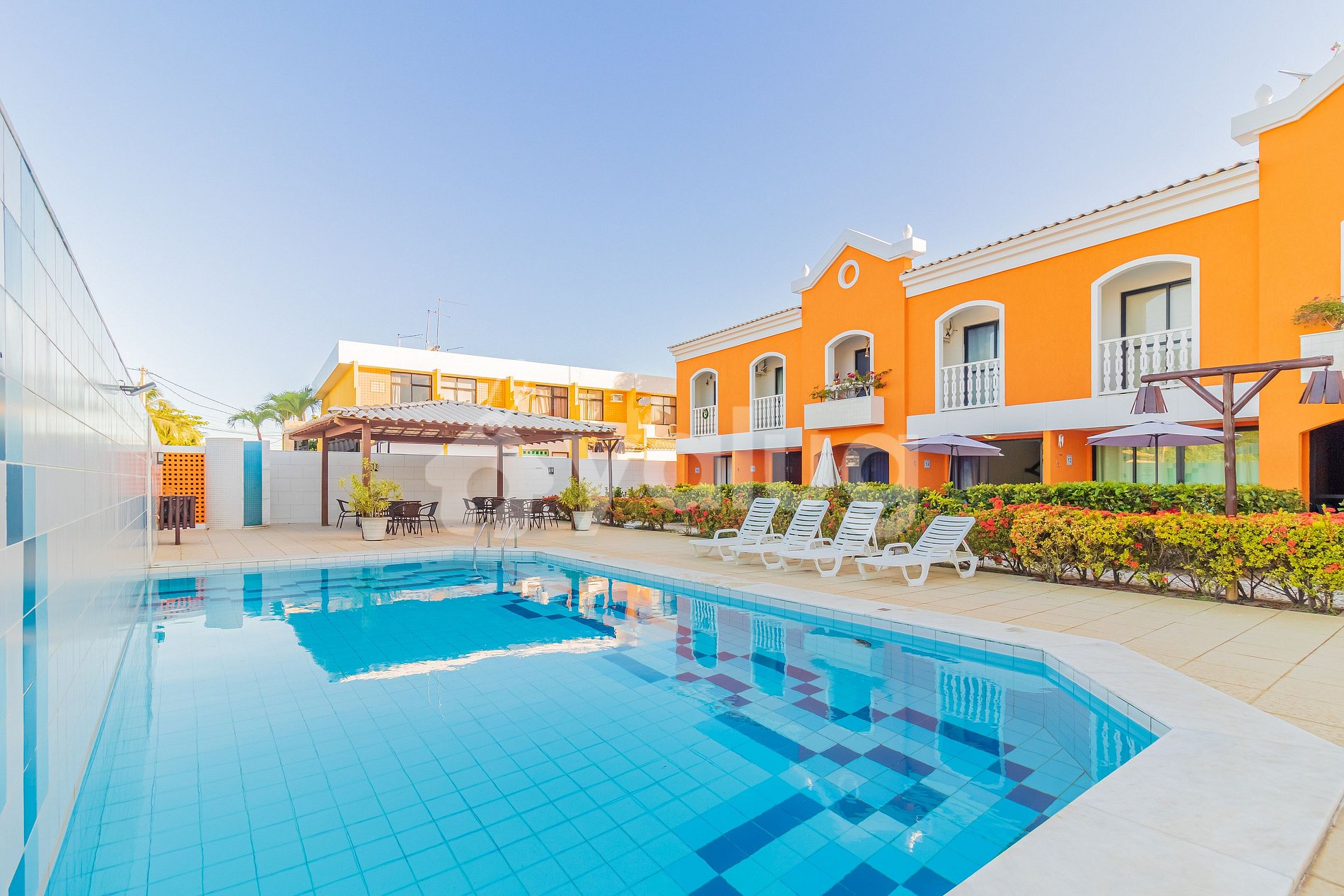 El Condominio tiene una gran estructura, con recepción las 24 horas, piscina y jardín.