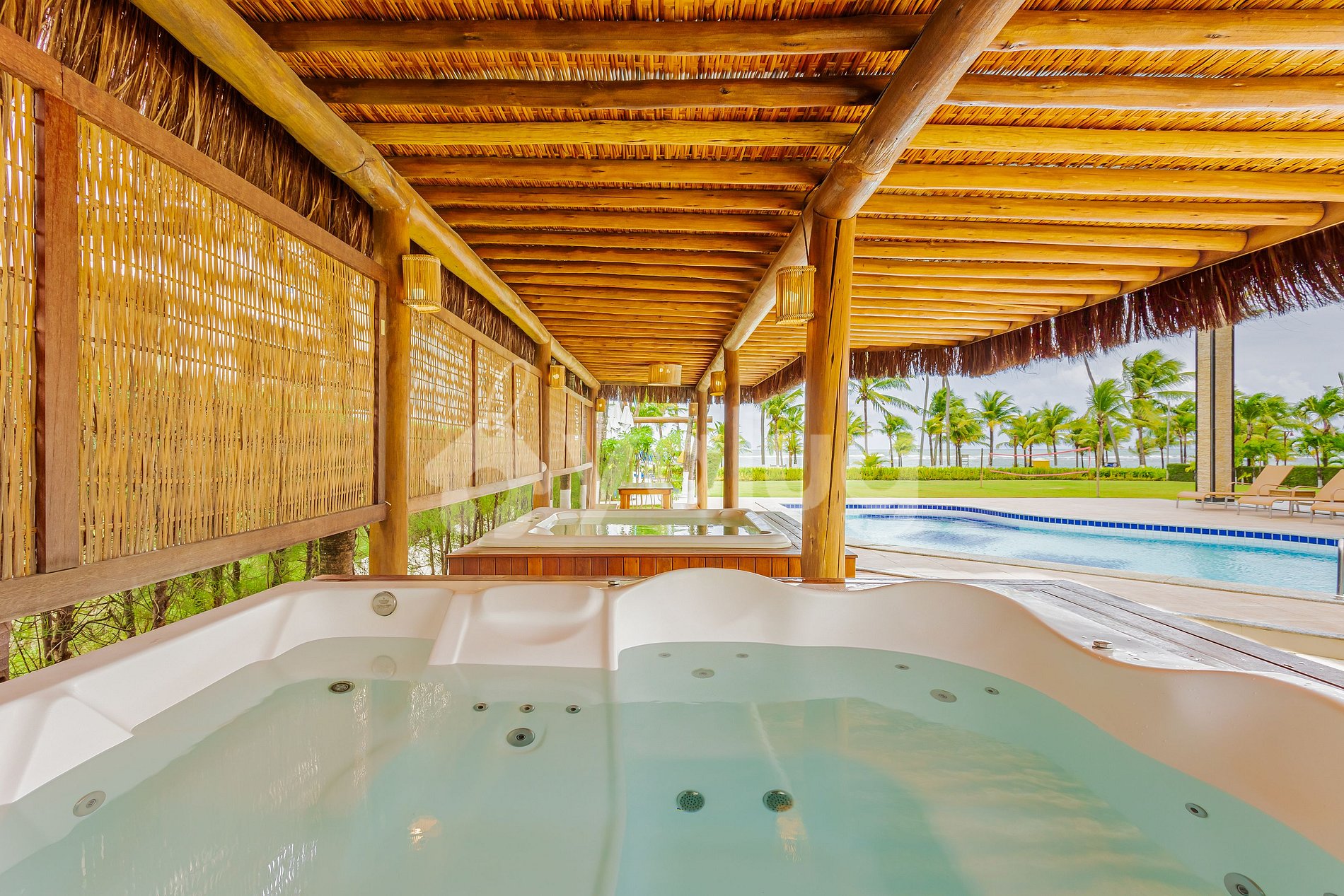 Además, ¡la casa tiene una estructura excelente! Hay 8 suites con aire acondicionado, una sala de estar y cocina también con aire acondicionado. En el exterior, una amplia zona con piscina, sauna, 2 jacuzzis, pista de futvolley, jardín y zona gourmet con barbacoa.