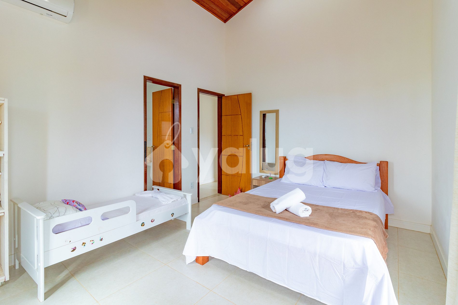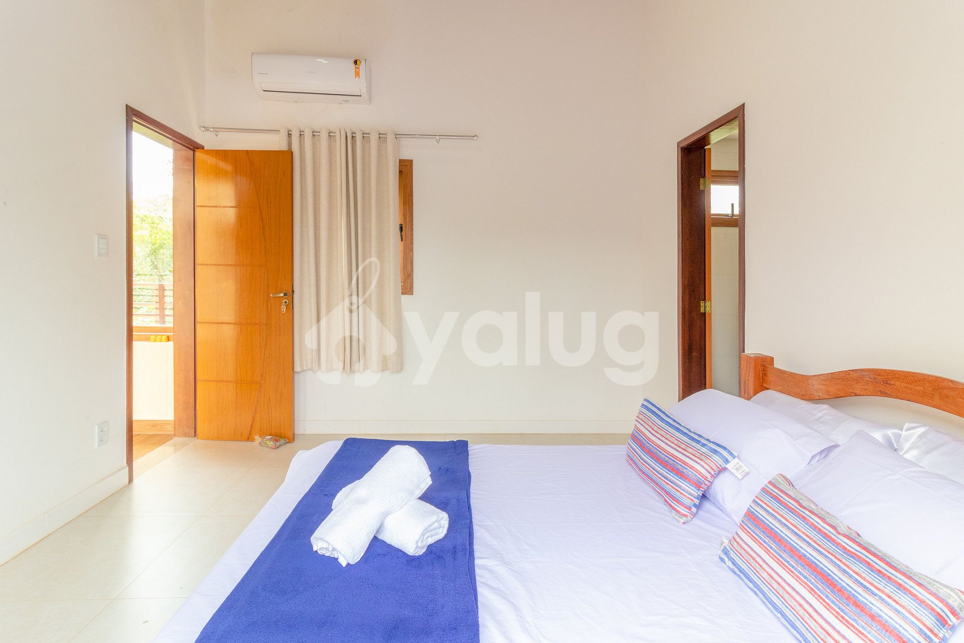 O espaço dispõe de 6 suítes (2 térreas), todas com ar condicionado tipo Split. Além disso, você encontrará uma sala de estar equipada com Smart TV, mesa de jantar para 5 pessoas e uma cozinha completa.