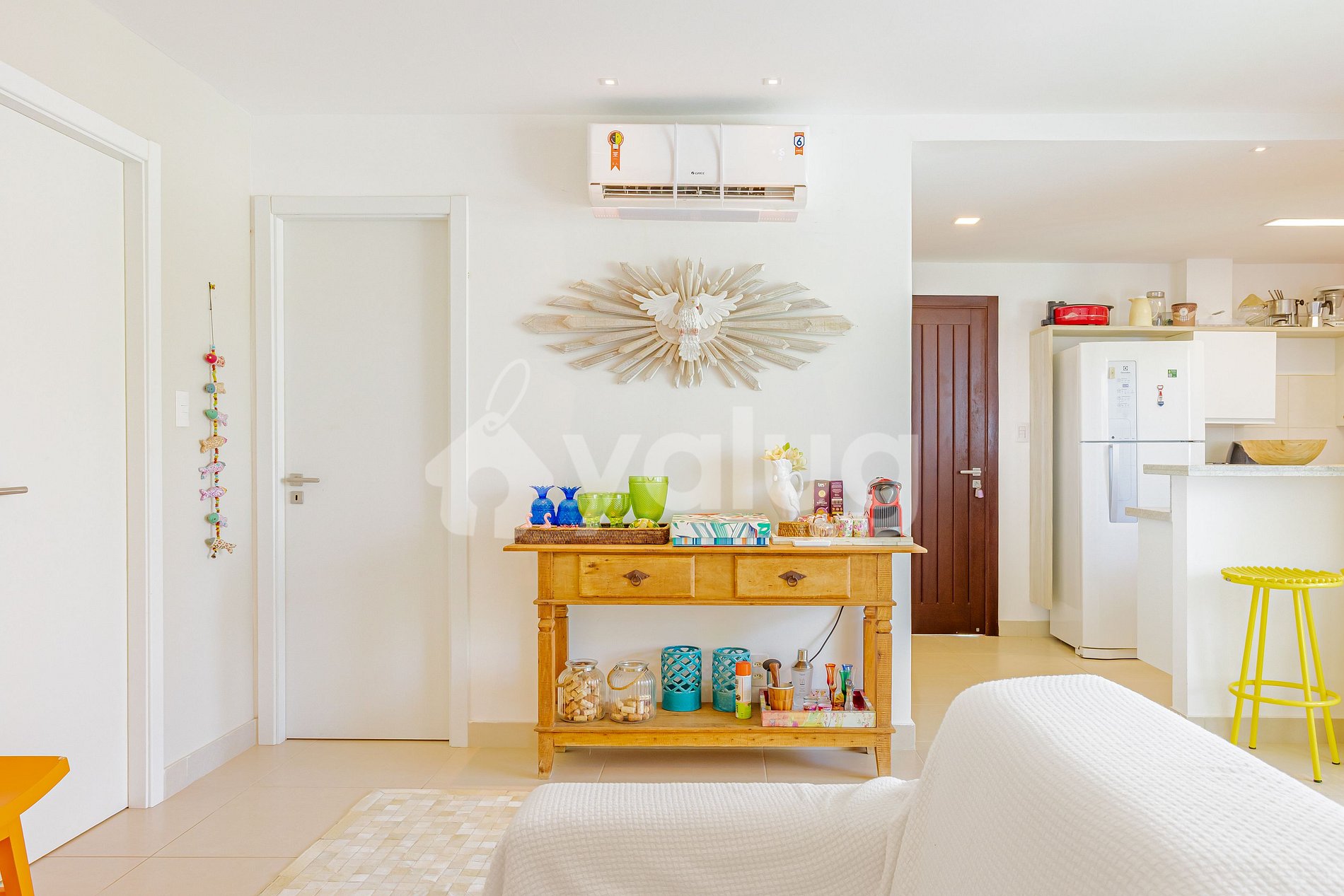 Sala: Sofá cama casal, tv, ar-condicionado split.