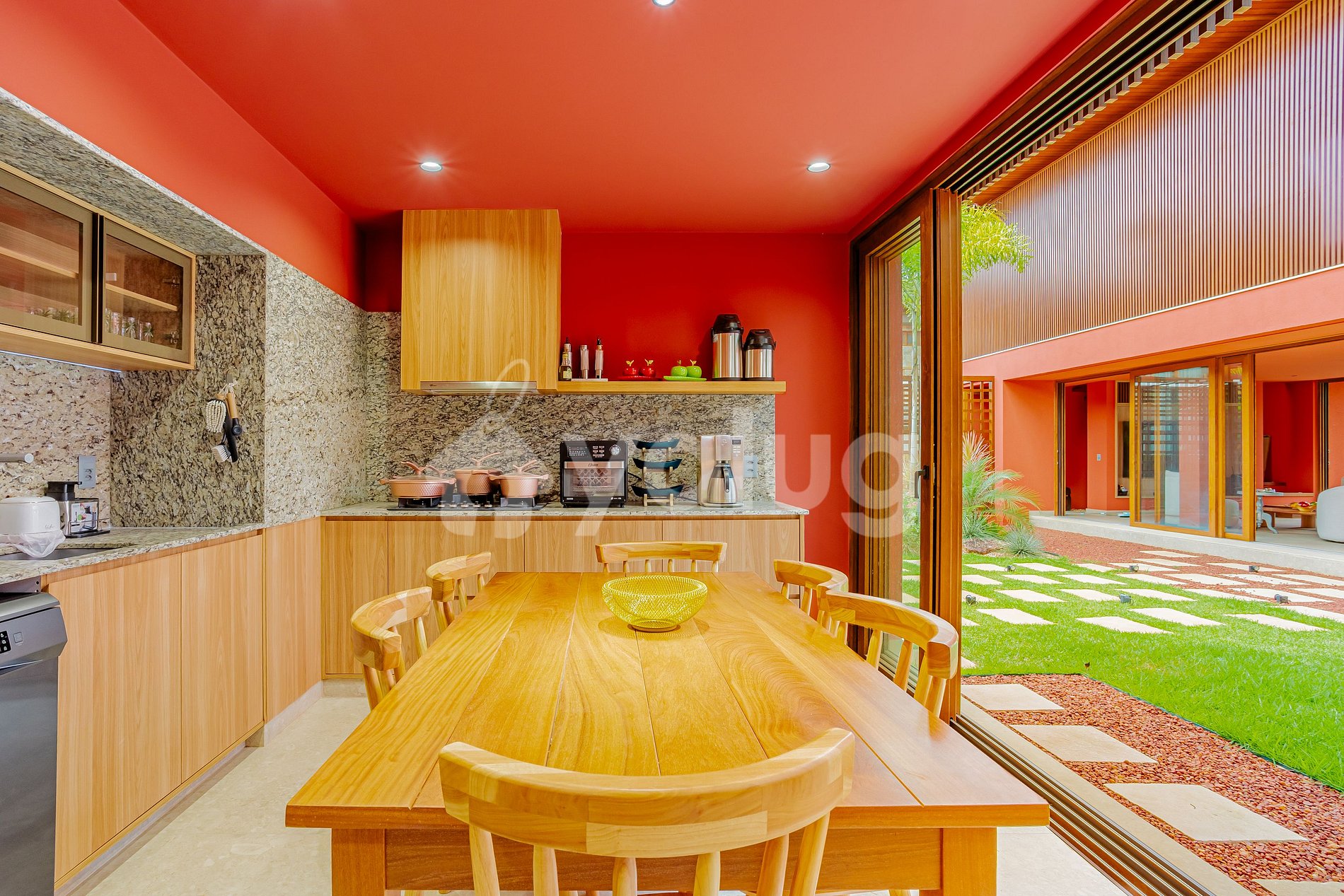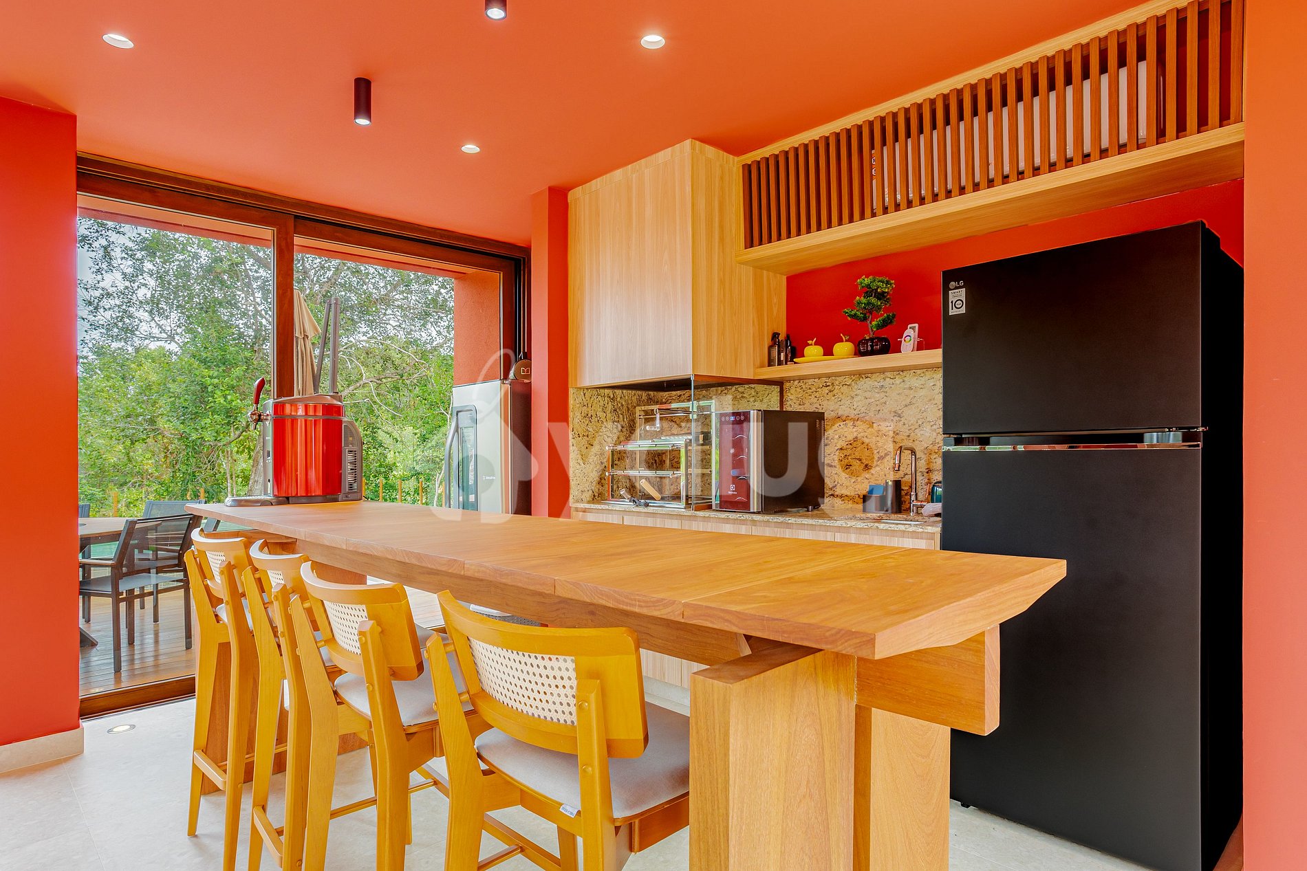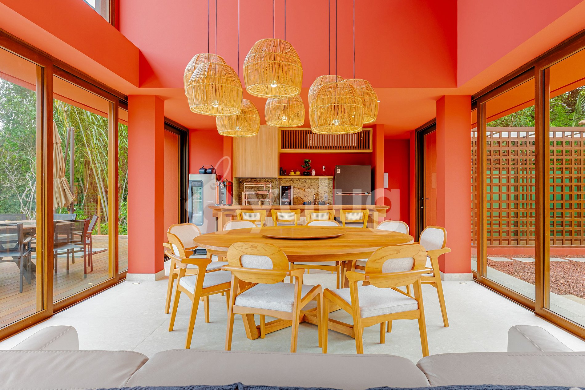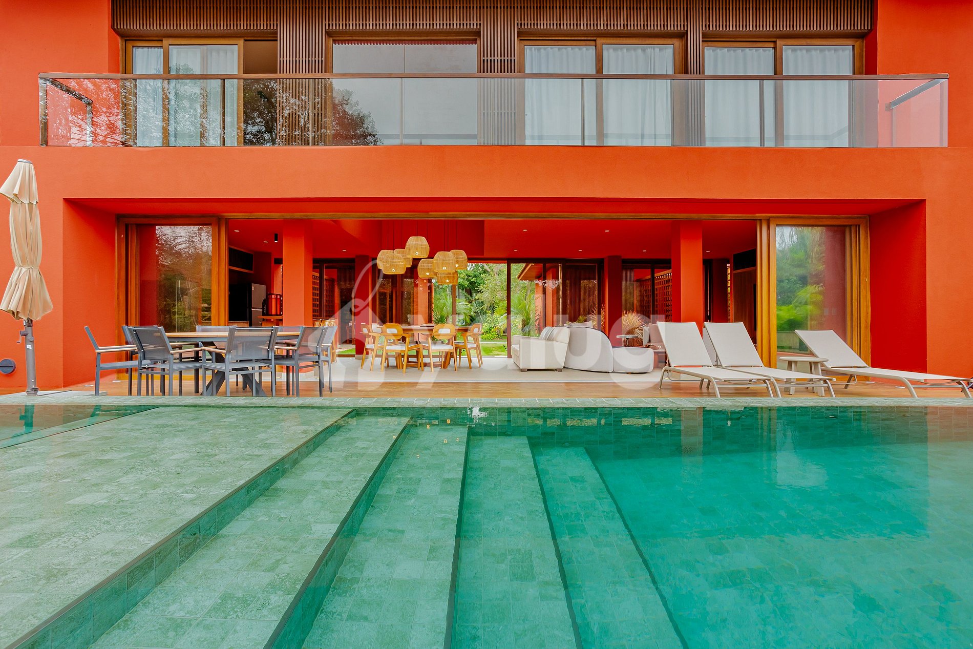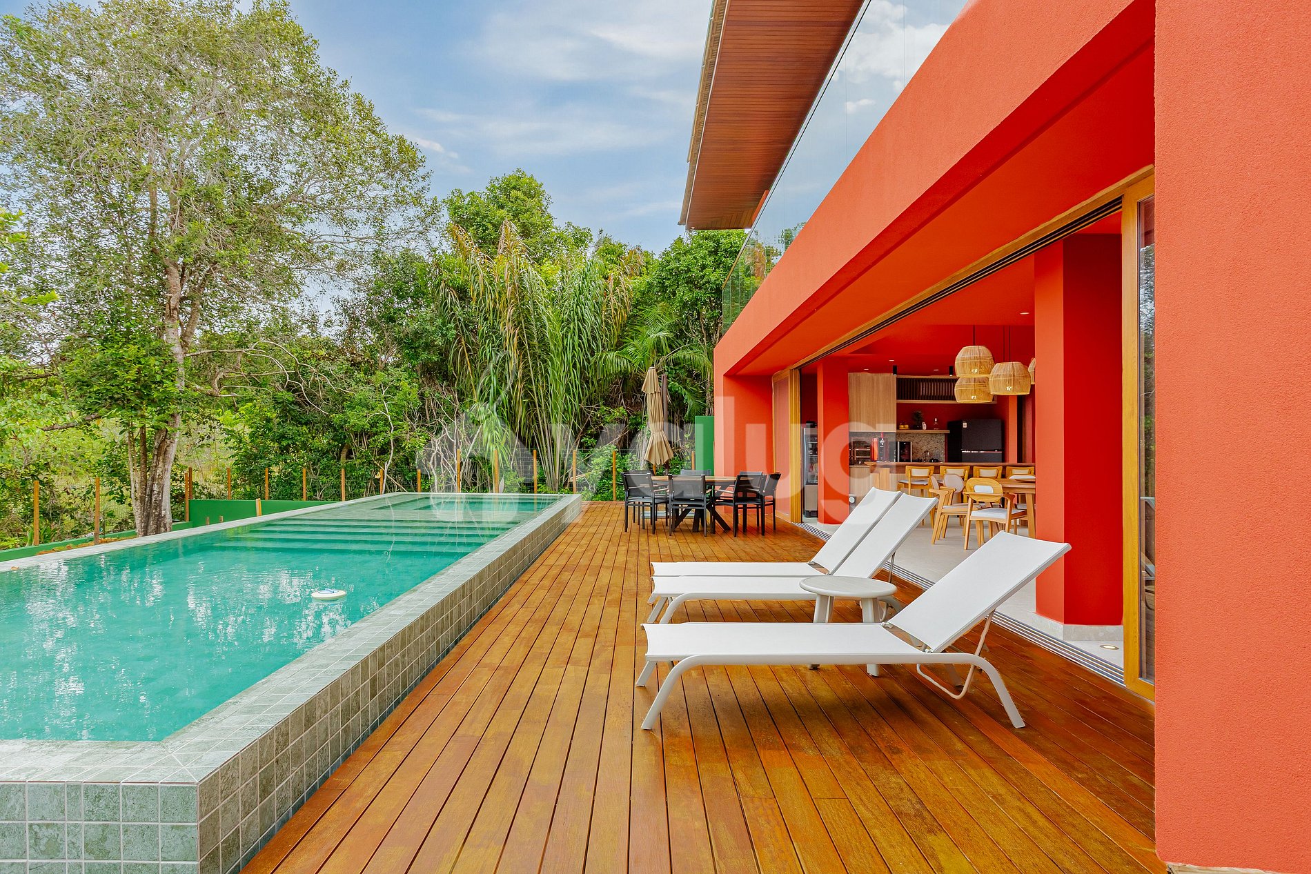 A área gourmet foi pensada para momentos inesquecíveis: piscina ampla cercada de área verde, churrasqueira moderna e mobiliário externo que garante conforto e descontração.
