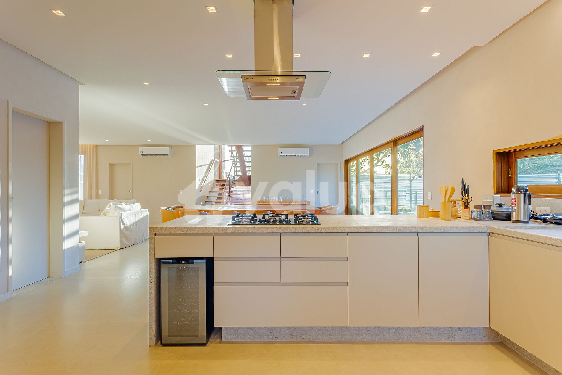 Dispõe de uma sala de estar, cozinha completa, 5 suítes (2 no andar térreo) e todas com ar condicionado tipo split. Possui uma maravilhosa área externa, com piscina, área verde e espaço gourmet com churrasqueira.