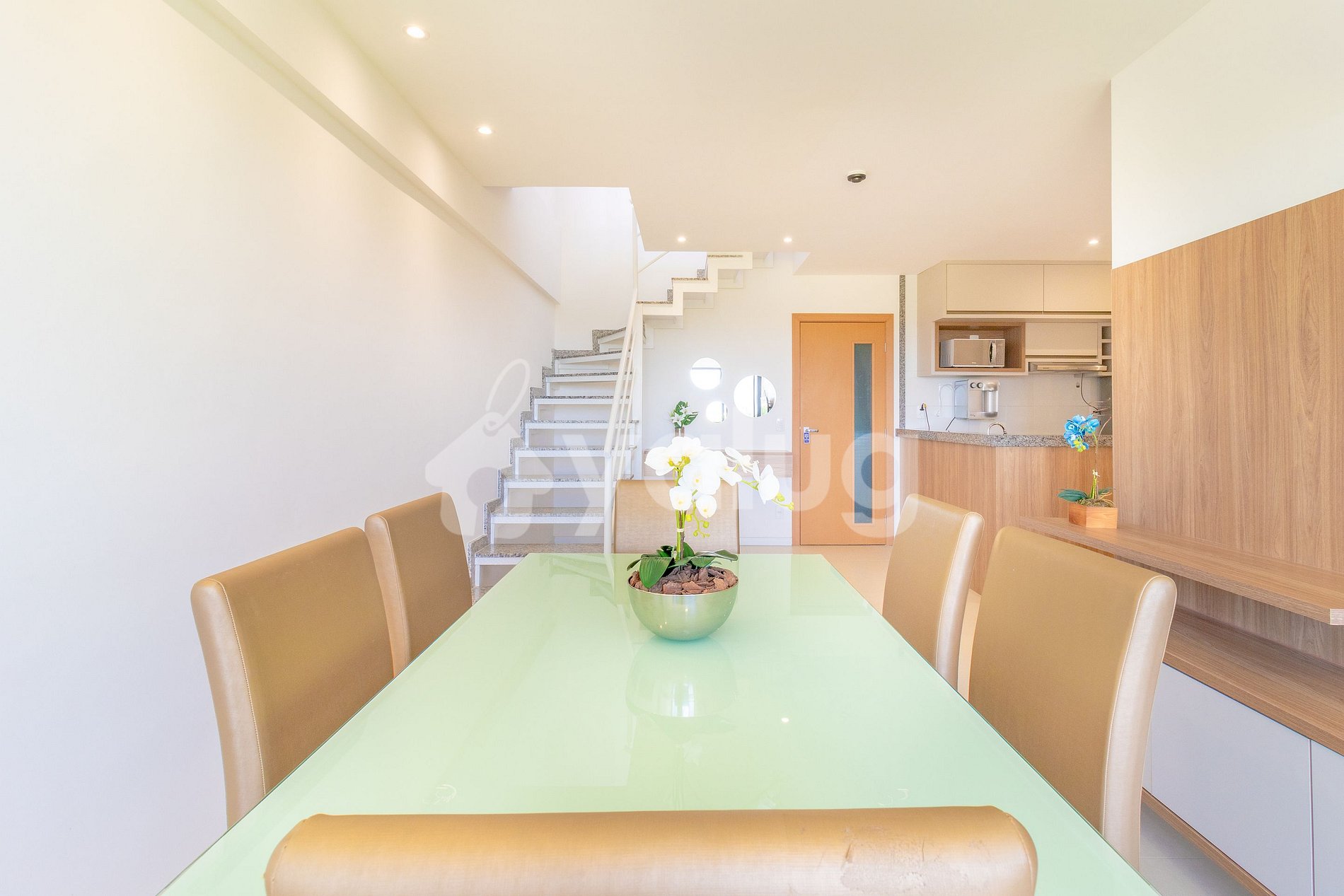 Apartamento duplex localizado no 3º andar, composto por 3 suítes todas com ar condicionado, sala de estar aconchegante, climatizada com TV Smart e cozinha completa. Na cobertura possui uma sala com TV e sofá e um excelente terraço.