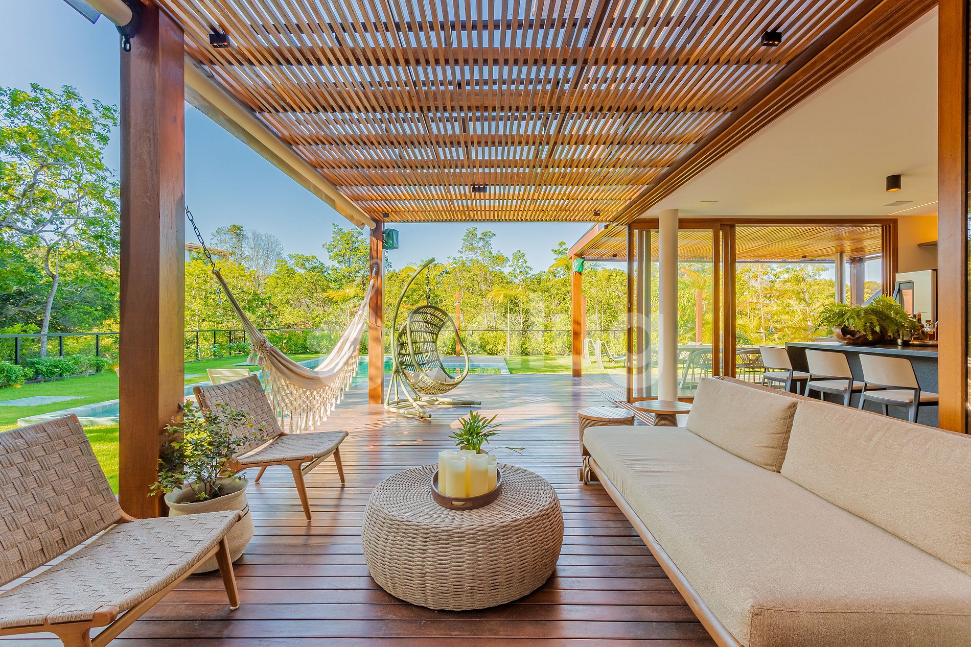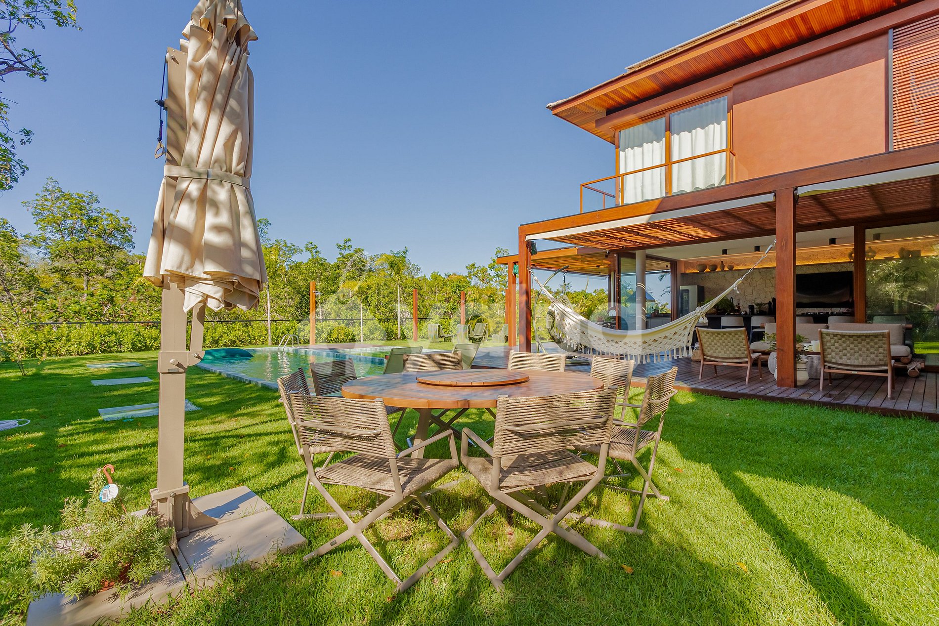 Casa de 5 suítes, onde o design contemporâneo se encontra com o conforto. Com espaços cuidadosamente decorados e amenidades de alta qualidade, oferece um estilo de vida sofisticado e relaxante. Desfrute de momentos de lazer na piscina, no espaço gourmet com churrasqueira e jardim.