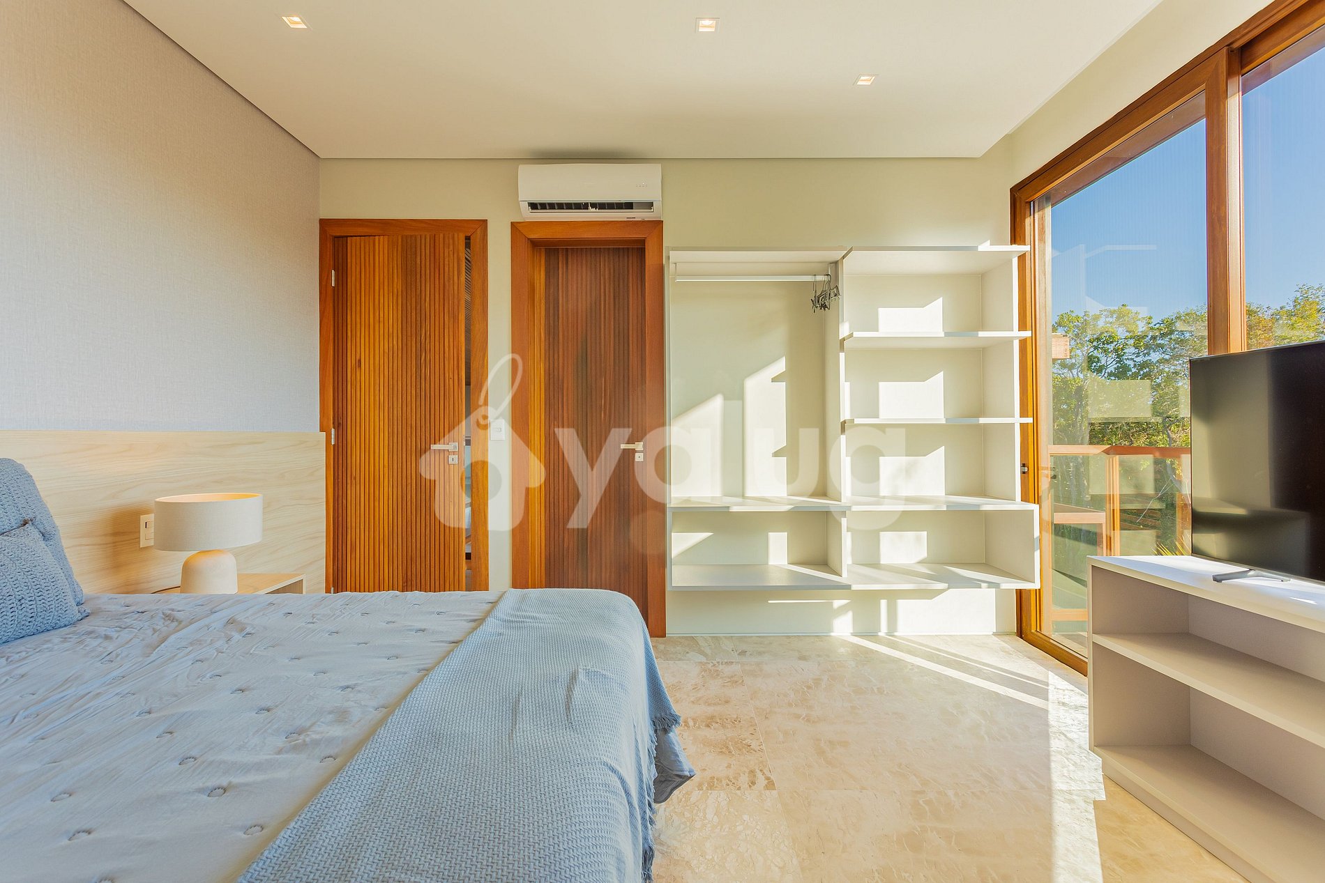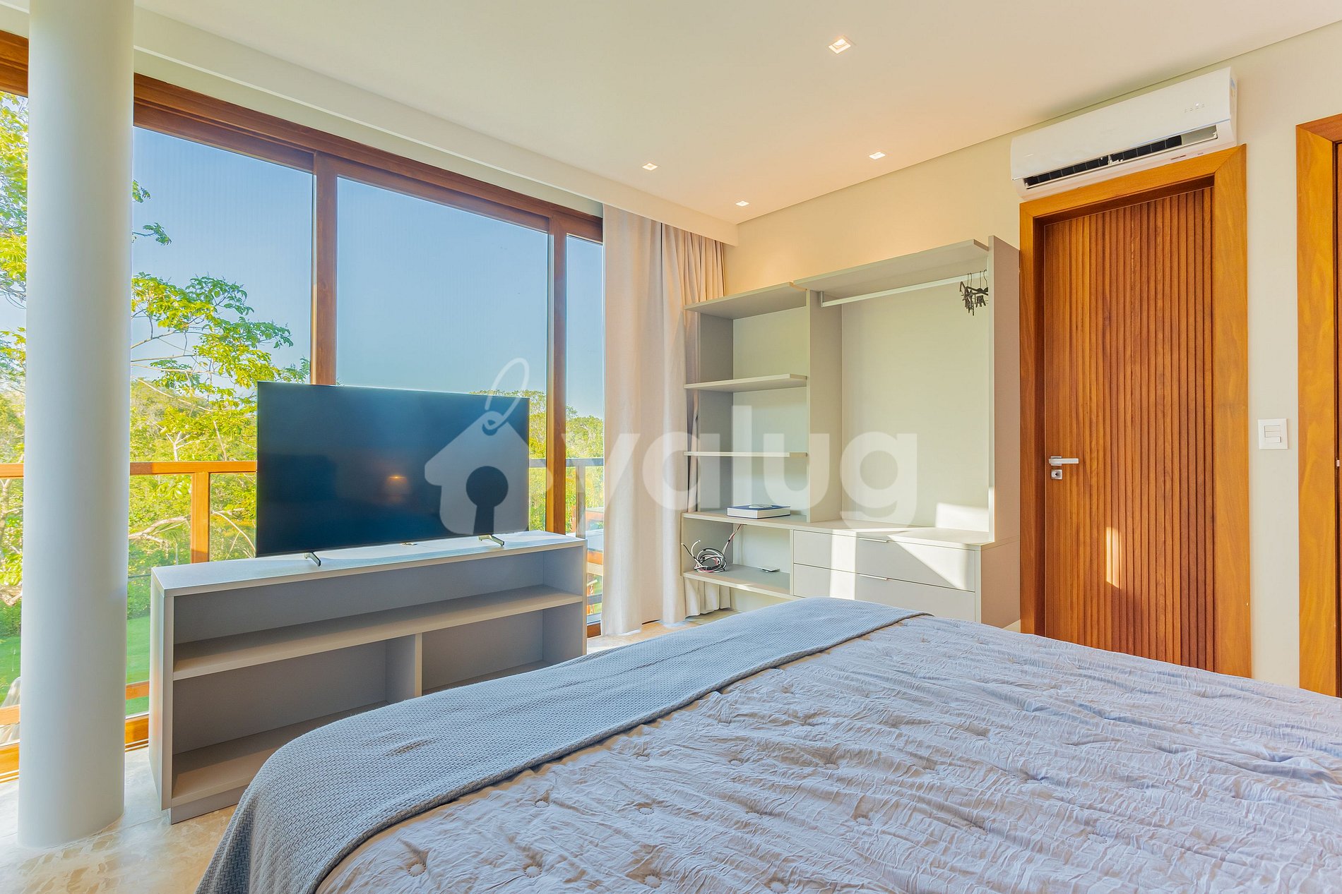 Suíte 4 (superior): 1 cama casal, ar condicionado split, cortina blackout, armário, smart tv e varanda;