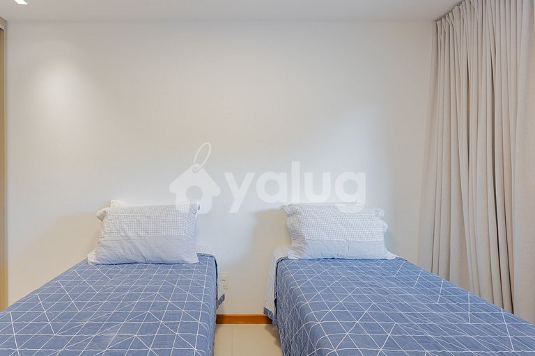 Suíte 2 (térreo): 2 bicamas, ar condicionado split, cortina blackout e armário.