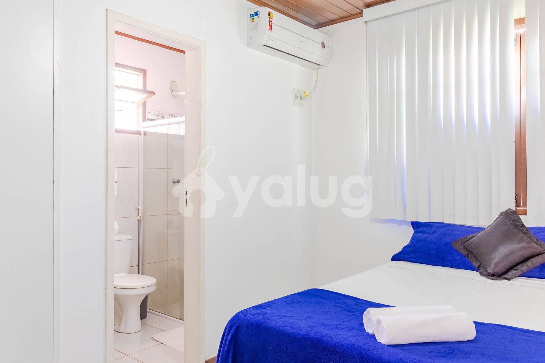 Suíte 1 (Térreo): 1 cama casal, ar condicionado tipo split, ventilador e cortina.