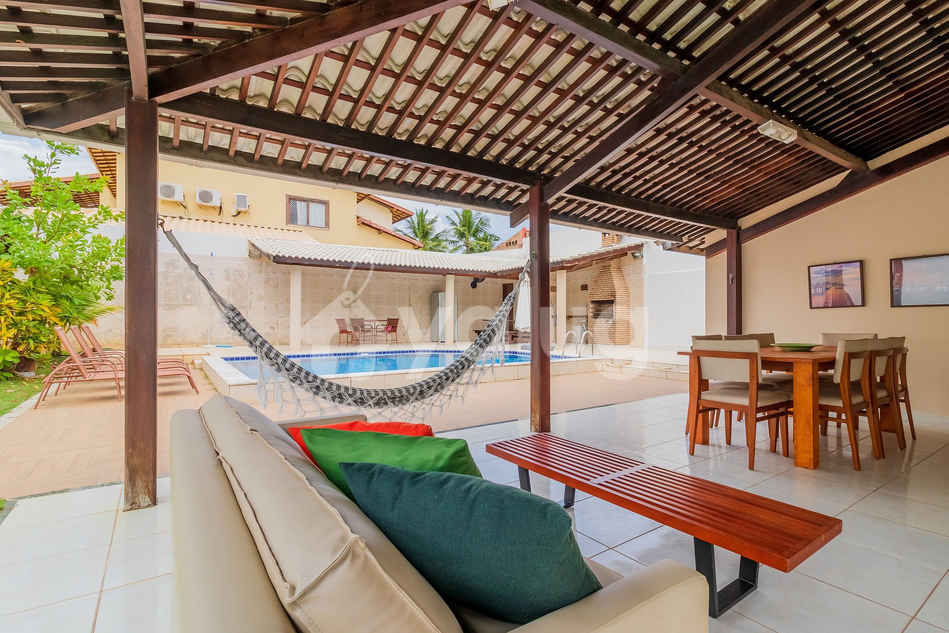 Localizado no Condomínio Paraíso, com segurança 24h, o meu imóvel dispõe de sala de estar com Smart TV, Wi-Fi, cozinha completa integrada, 5 quartos (3 suites), sendo 4 no andar térreo e 1 no andar superior, todos com ar condicionado. Além disso, conta com uma área externa ótima para lazer, com assentos e rede na varanda, piscina e churrasqueira.