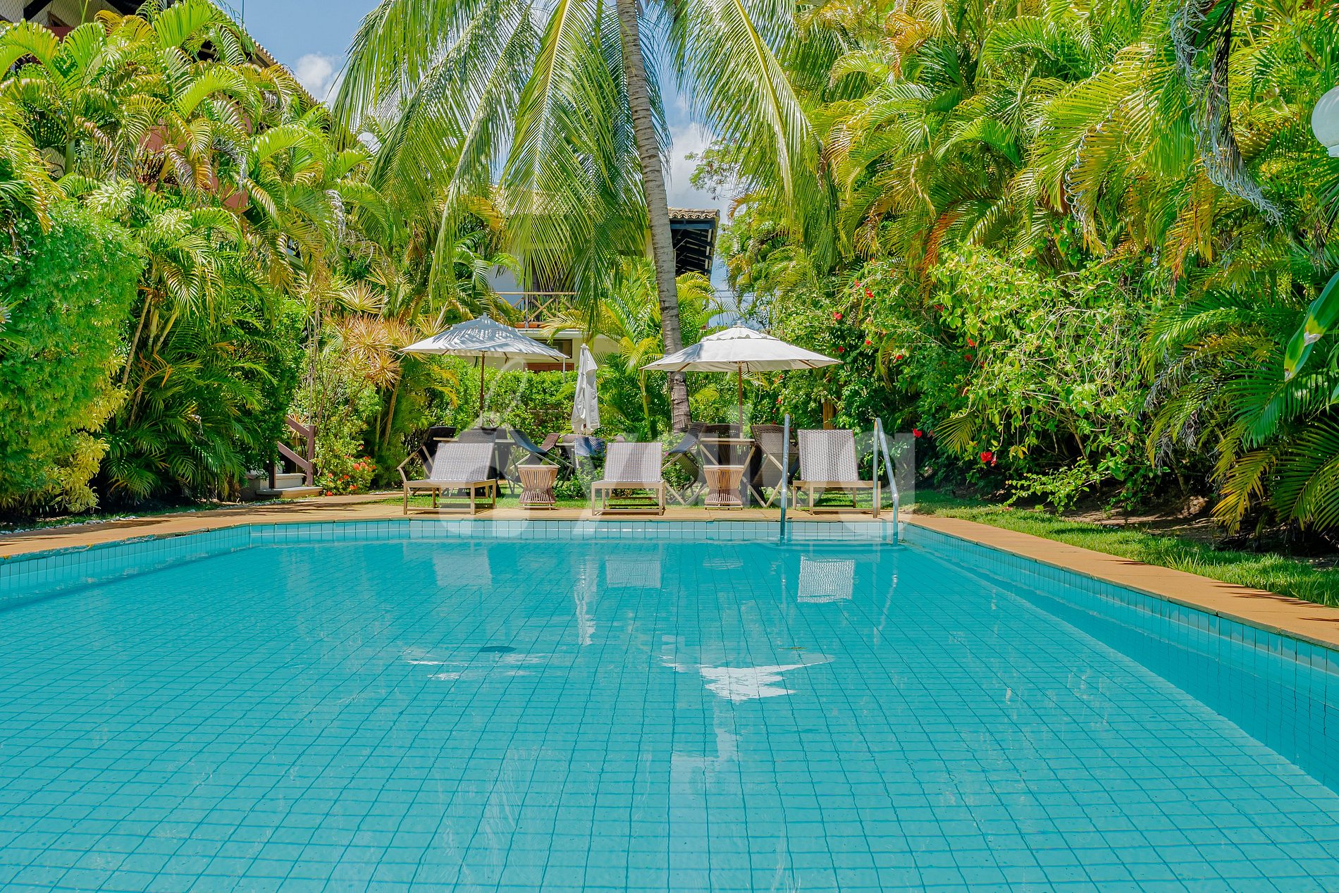 O condomínio conta com piscina e espaços ao ar livre perfeitos para relaxar após um dia de praia.
