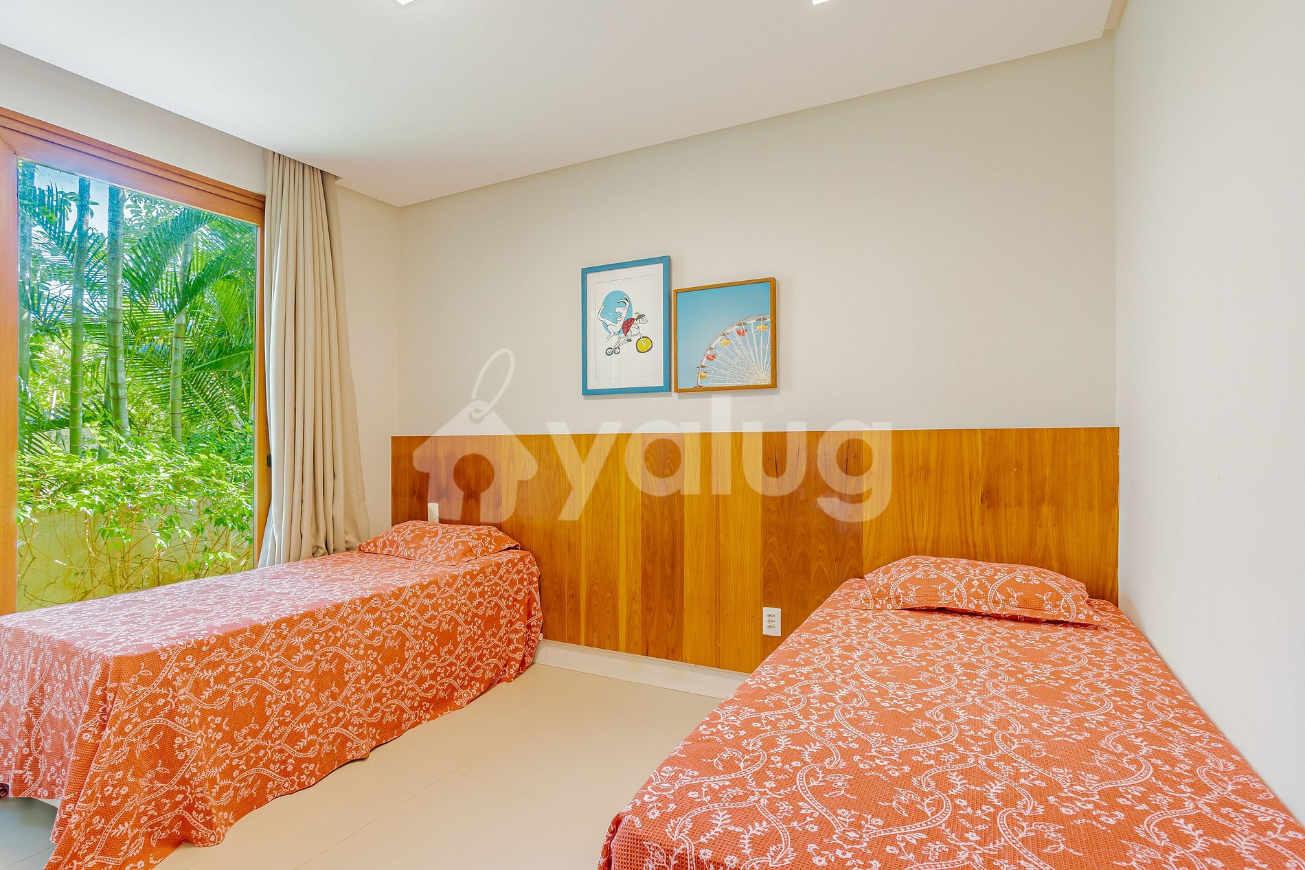 Suíte 2 (térreo): 2 camas solteiro + 2 camas auxiliares, ar-condicionado, TV, armários, cortina, blackout e acesso à varanda;