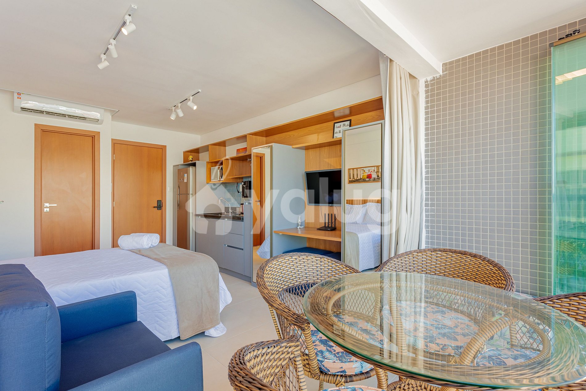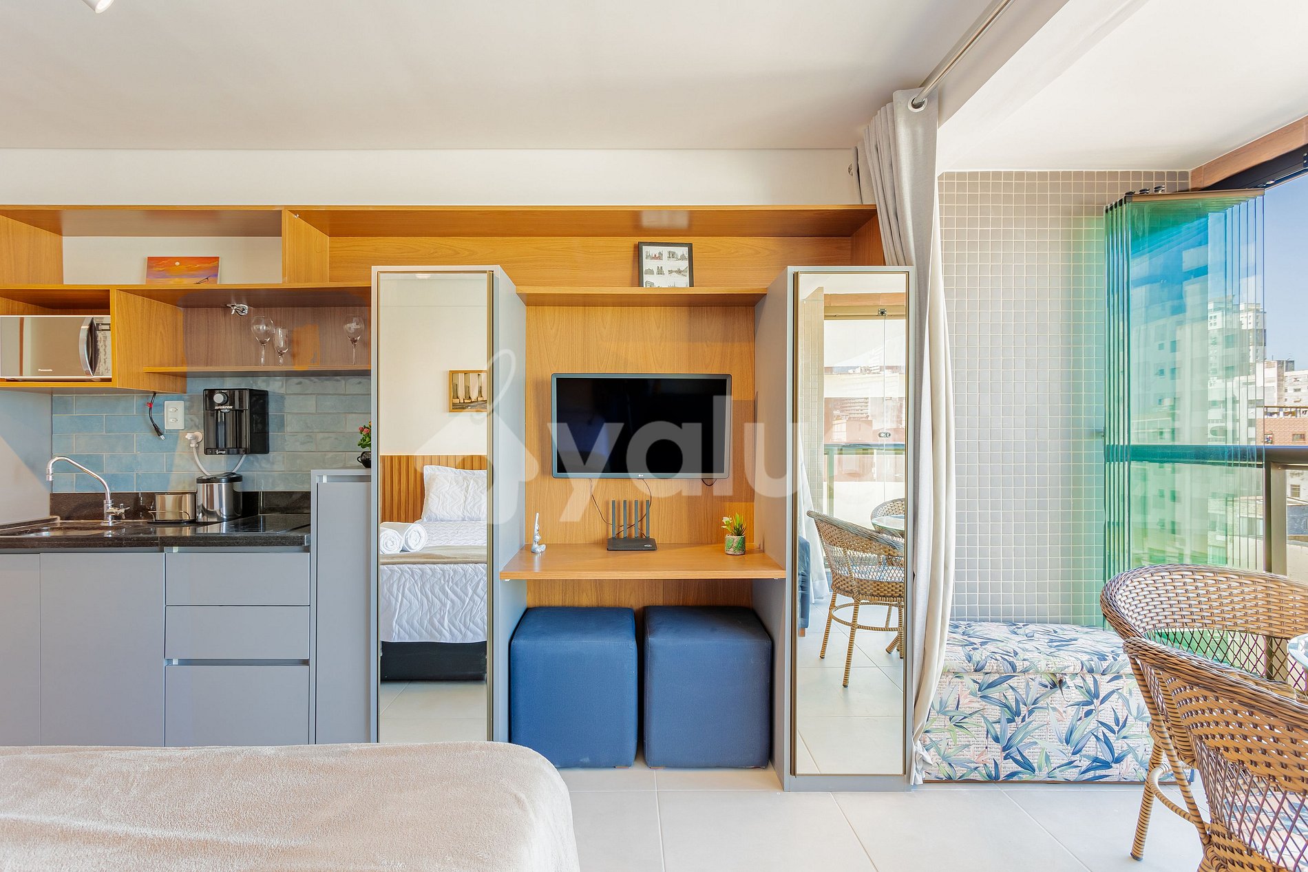 O quarto e sala é composto da seguinte forma: