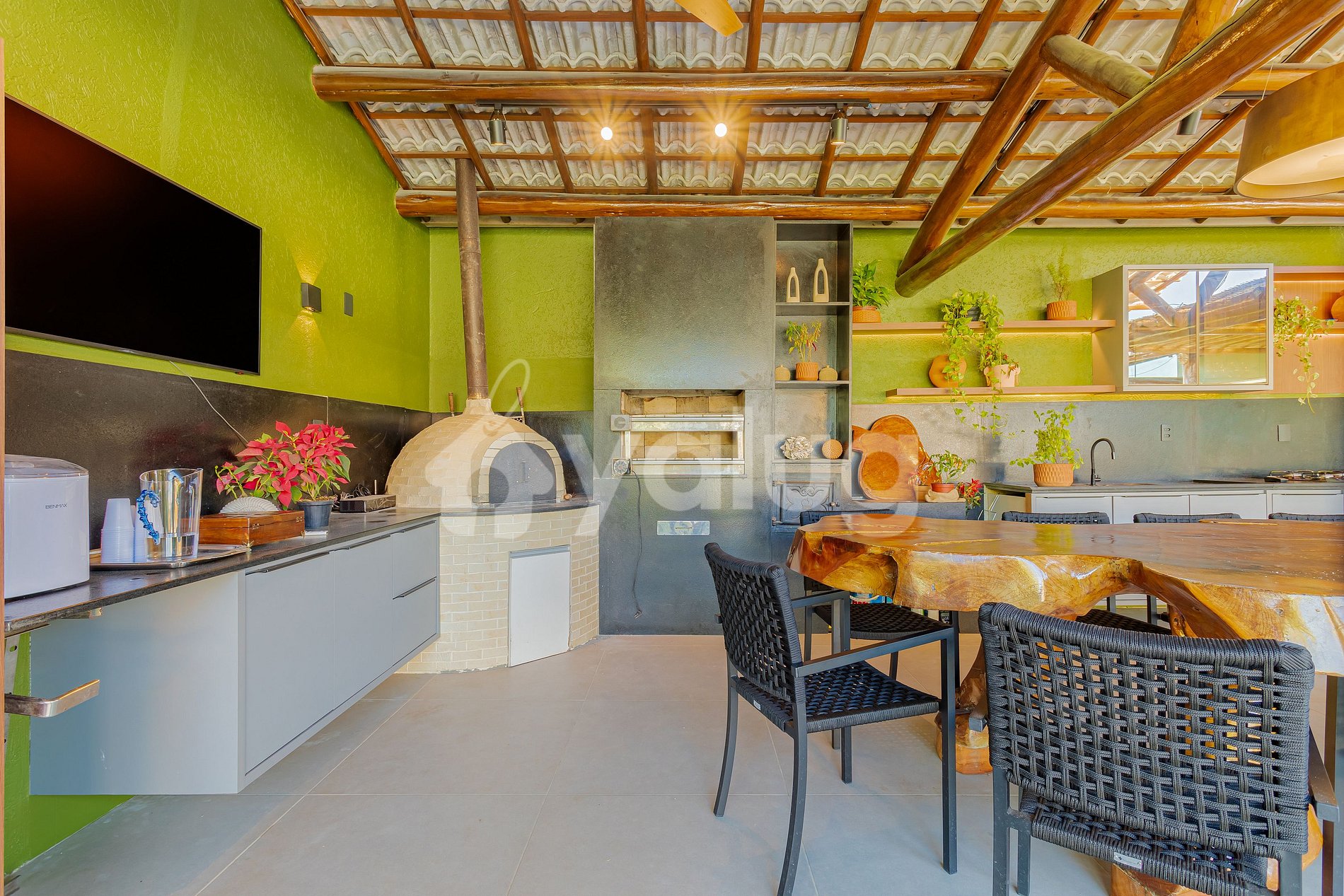 OBS.: Possuímos 1 suíte/dependência na área externa com 1cama casal, 1 beliche e ar condicionado split.
