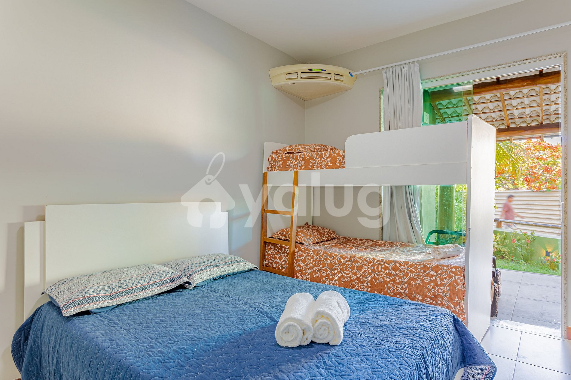 Suíte 2: 1 cama queen, 1 cama infantil, ar condicionado split, cortina blackout e armário;