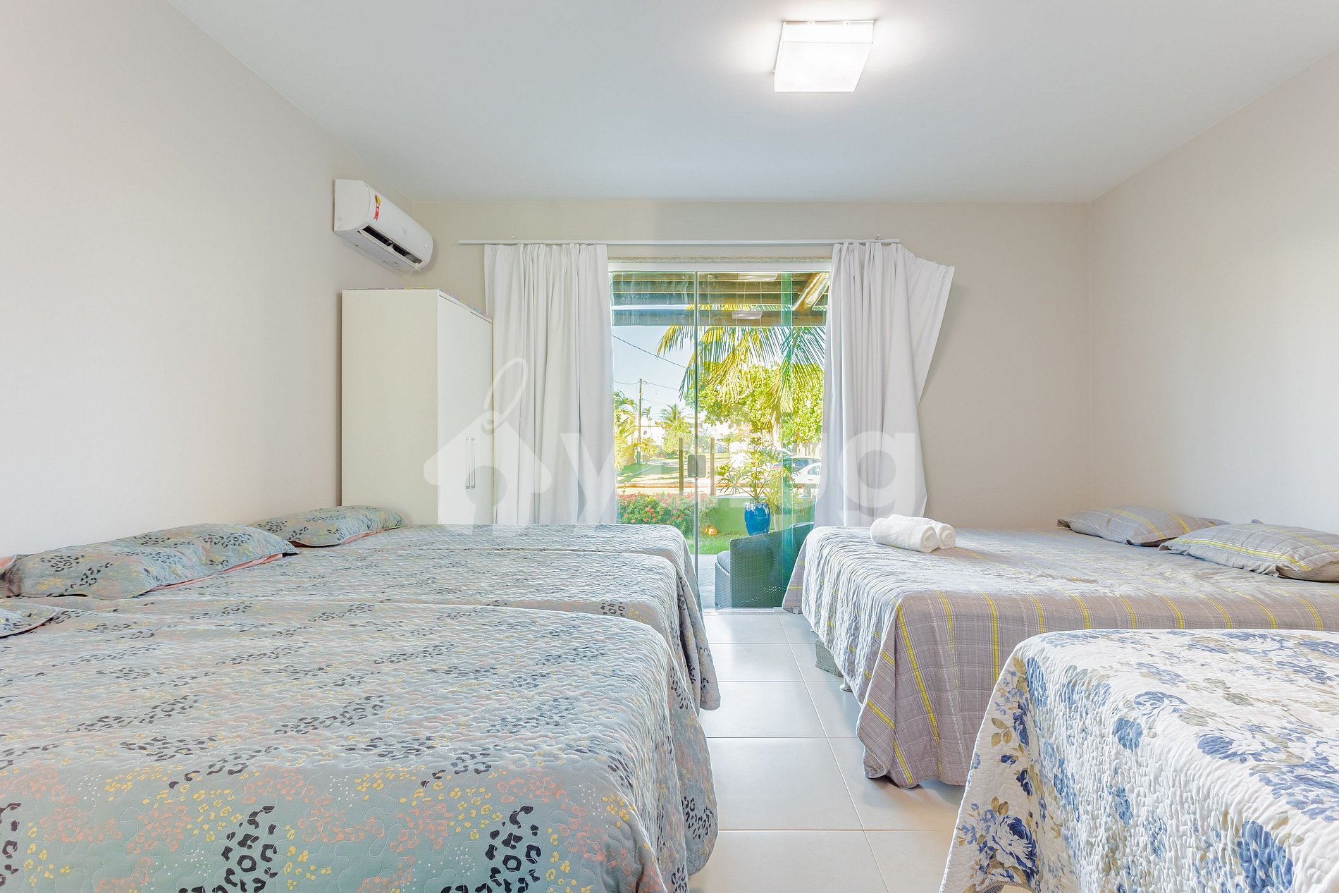 Suíte 5 (área externa): 2 camas casal, ar condicionado split, cortina blackout e armário;