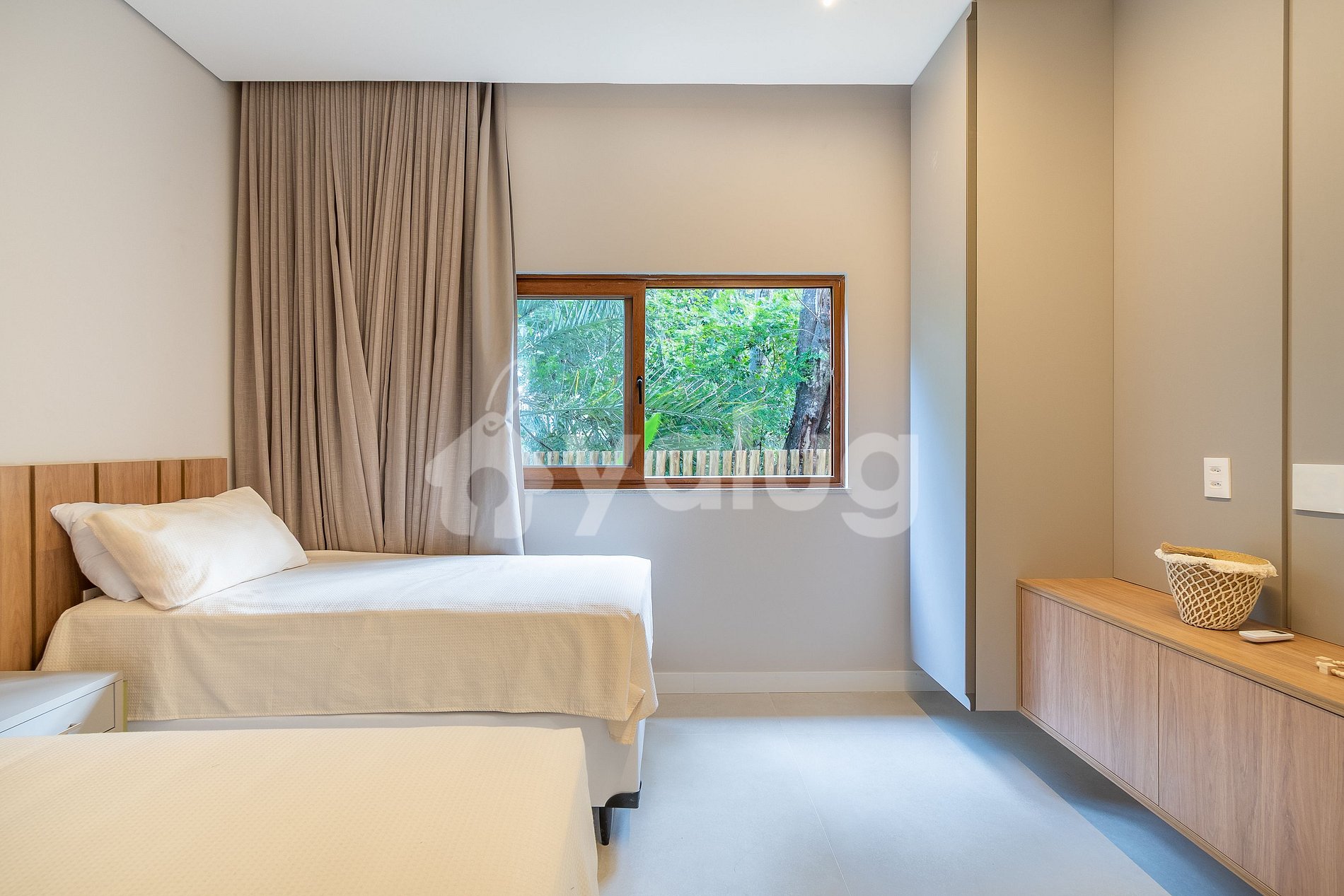 OBS.: Possuímos 1 suíte dependência com 1 cama de solteiro, ar condicionado, armário e cortina blackout.