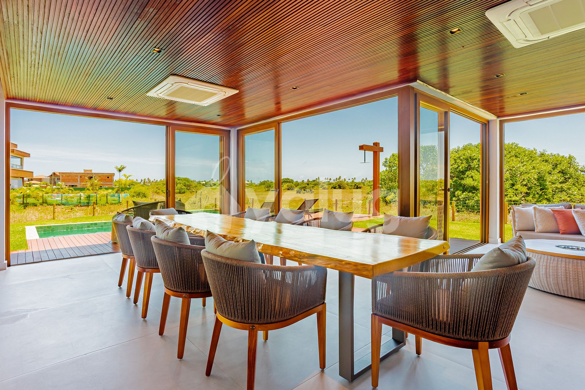 Conta com 7 suítes climatizadas, cozinha equipada e uma varanda mobiliada com churrasqueira, cervejeira, piscina e uma vista incrível da região.