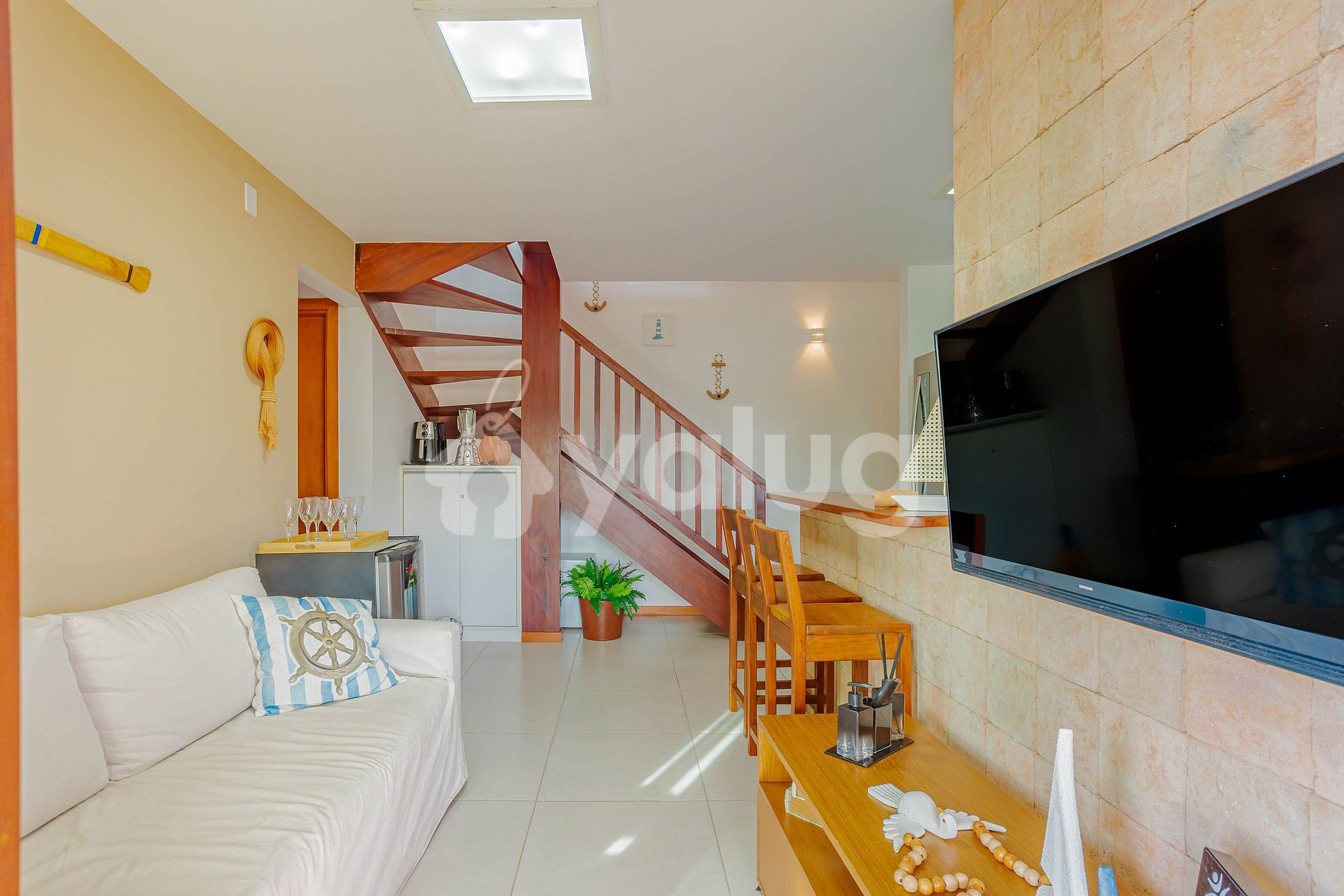 O condomínio oferece vista e acesso à praia, piscina, área gourmet com churrasqueira, espaço de convivência arejado, parquinho, segurança e estacionamento gratuito 24 horas.