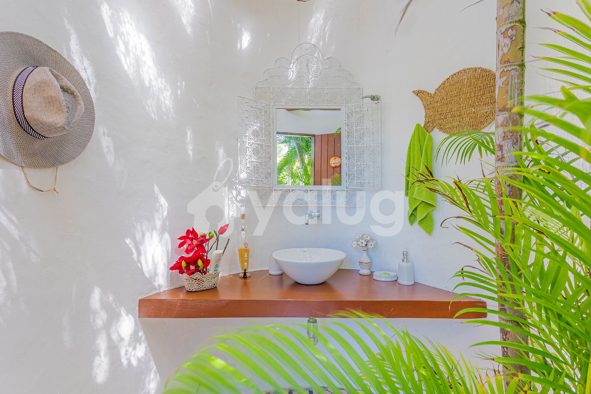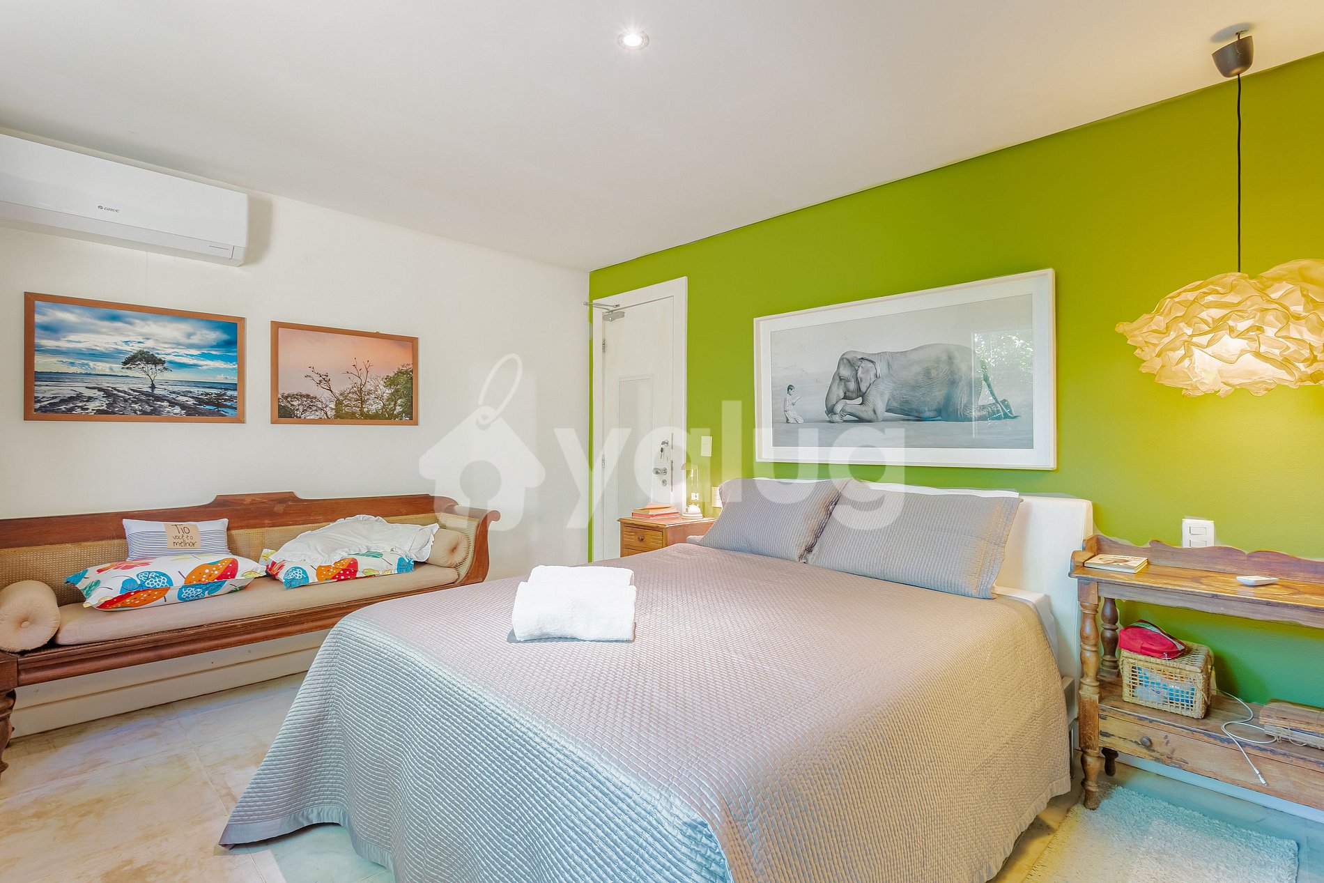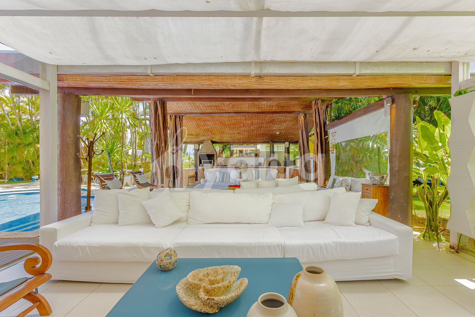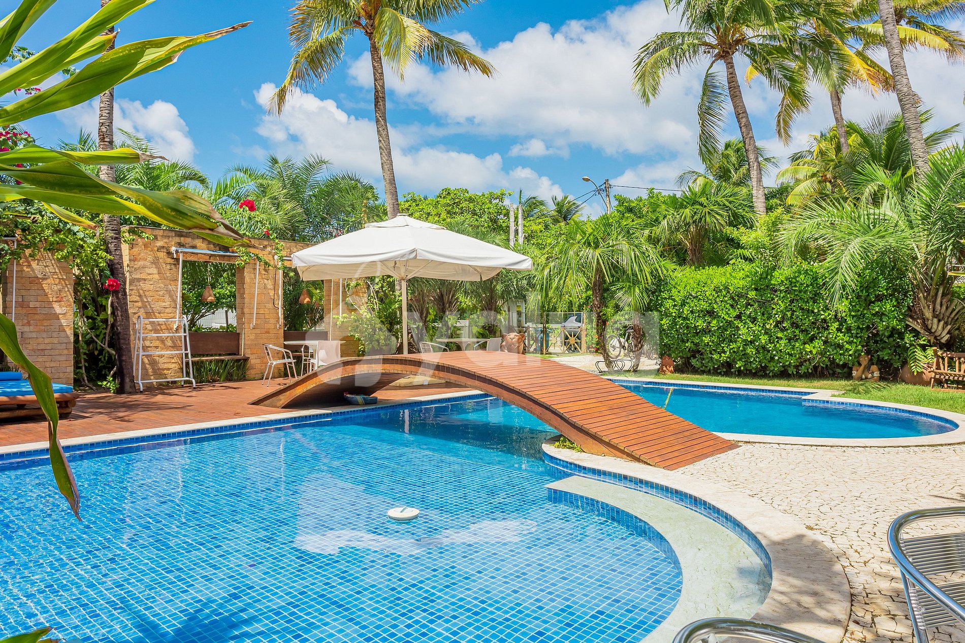 A propriedade conta com um extenso jardim repleto de árvores frutíferas, como, cajueiro, coqueiros, 2 pés pequenos de Jabuticaba., oferecendo aos hóspedes a oportunidade de desfrutar de água de coco fresca e frutas deliciosas durante o verão. Uma ponte leva a uma ilhota, adicionando um toque especial ao ambiente. Ideal para relaxar em família, o condomínio oferece uma localização privilegiada, segurança, e uma variedade de atividades, como acesso à praia, lagoa, bosques, academia, quadras poliesportivas, ciclovias e parques infantis. Uma verdadeira experiência imersiva na exuberante natureza baiana, a apenas 20 km do aeroporto.