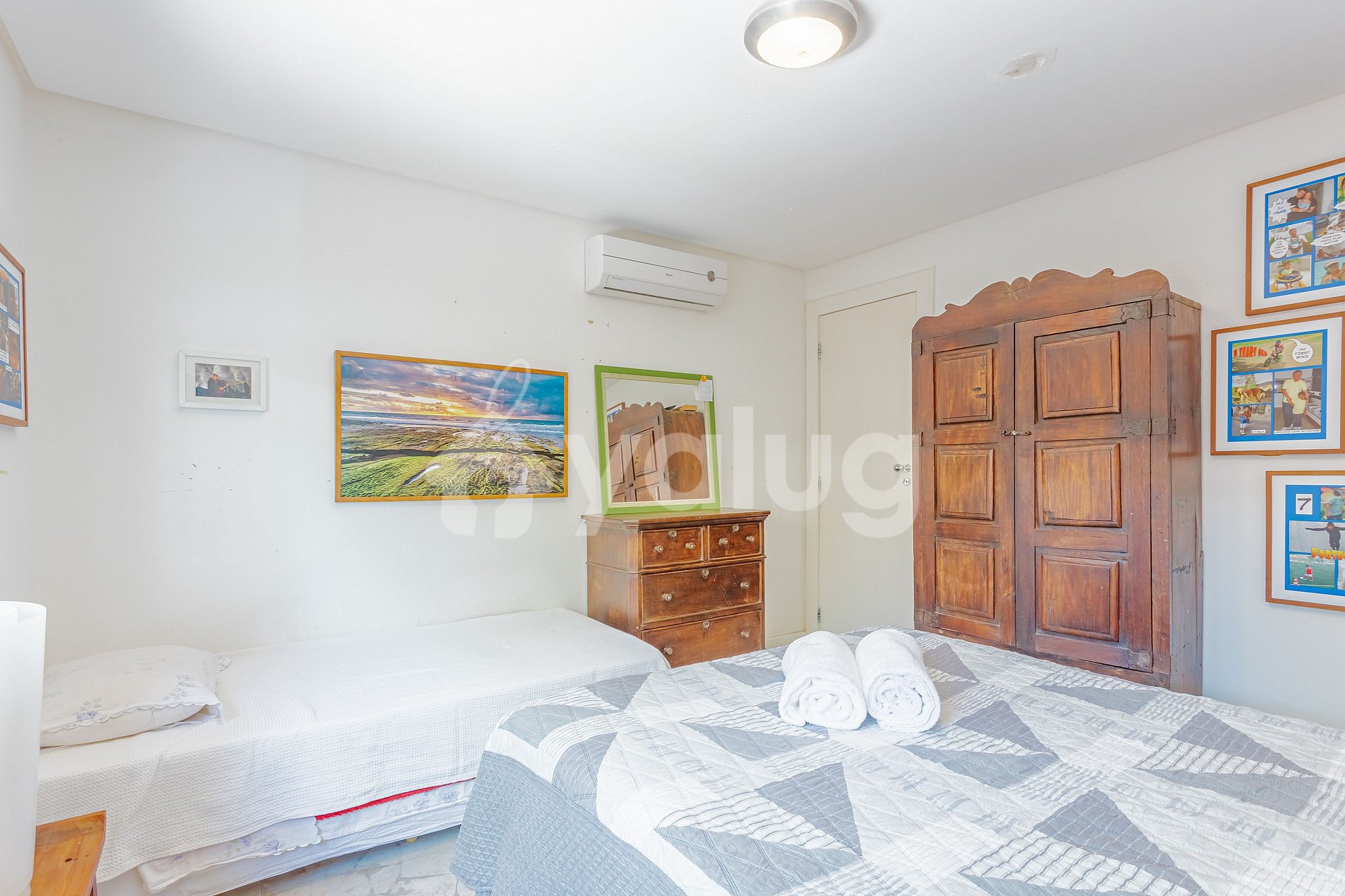 Suíte 4 (fora da casa):1 cama de casal, 2 beliches, ar-condicionado Split, cortinas blackout e armário.