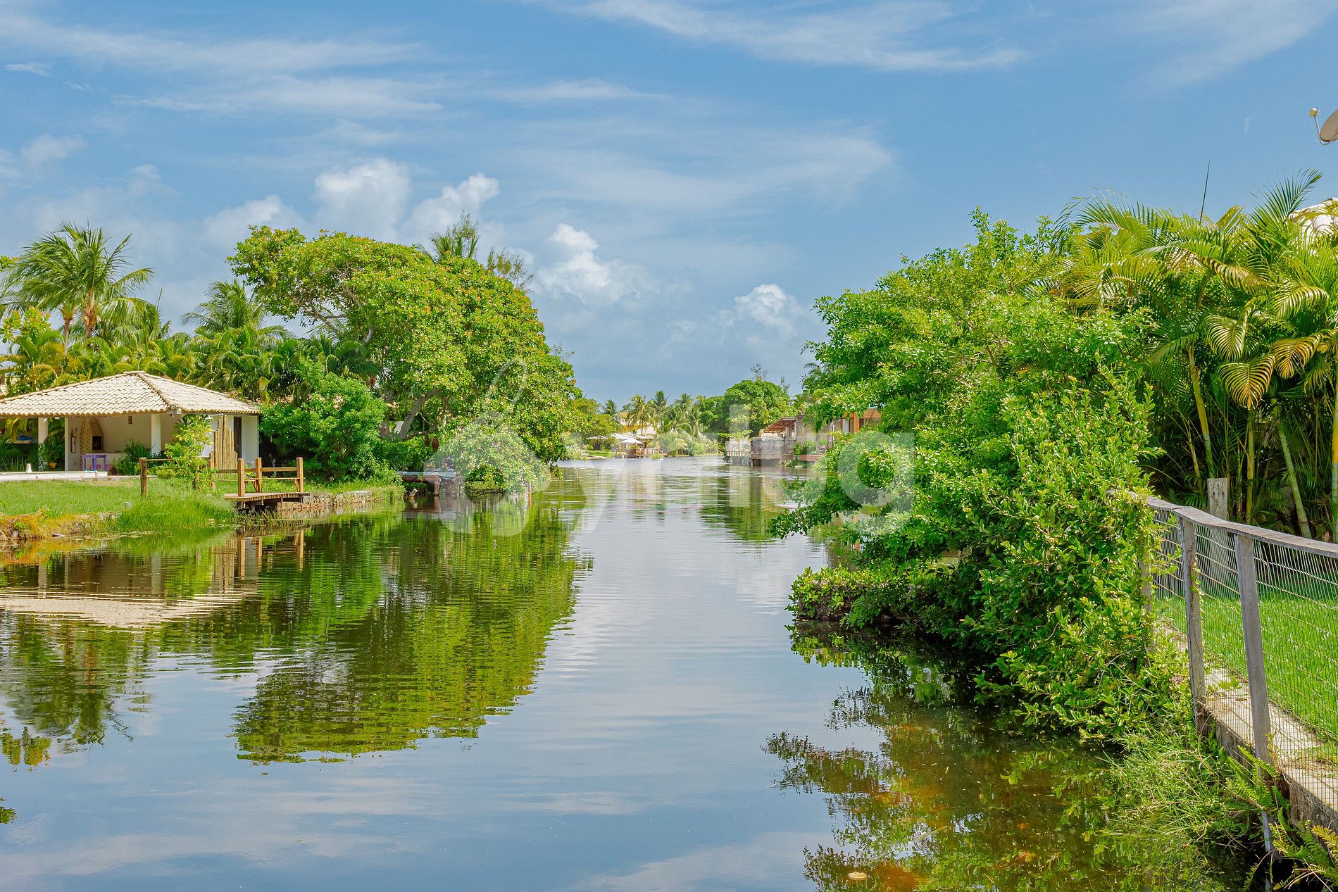 A propriedade conta com um extenso jardim repleto de árvores frutíferas, como, cajueiro, coqueiros, 2 pés pequenos de Jabuticaba., oferecendo aos hóspedes a oportunidade de desfrutar de água de coco fresca e frutas deliciosas durante o verão. Uma ponte leva a uma ilhota, adicionando um toque especial ao ambiente. Ideal para relaxar em família, o condomínio oferece uma localização privilegiada, segurança, e uma variedade de atividades, como acesso à praia, lagoa, bosques, academia, quadras poliesportivas, ciclovias e parques infantis. Uma verdadeira experiência imersiva na exuberante natureza baiana, a apenas 20 km do aeroporto.