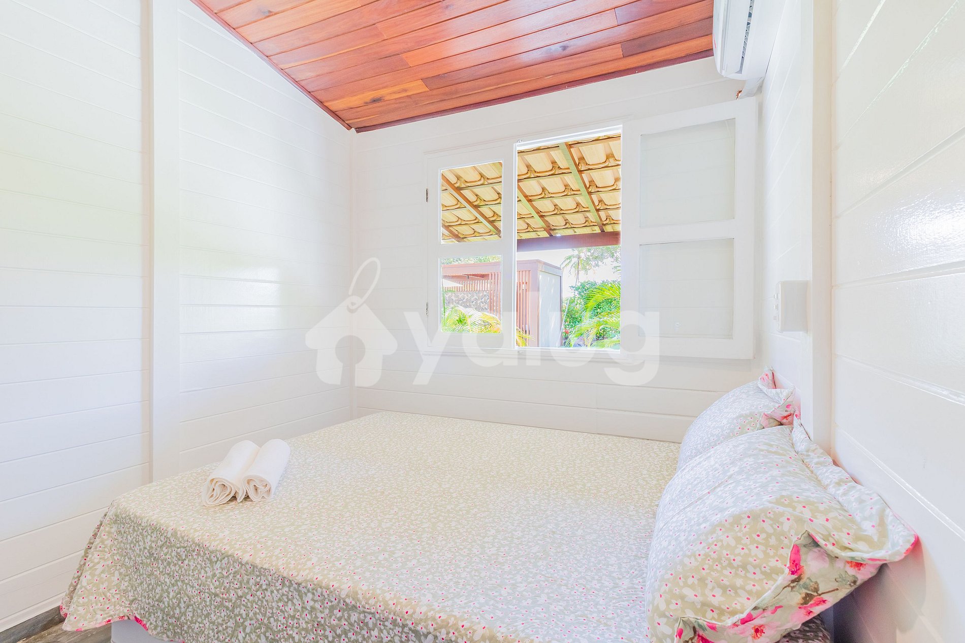 Quarto 1: 1 cama casal, 1 colchão solteiro, ar condicionado split e ventilador;