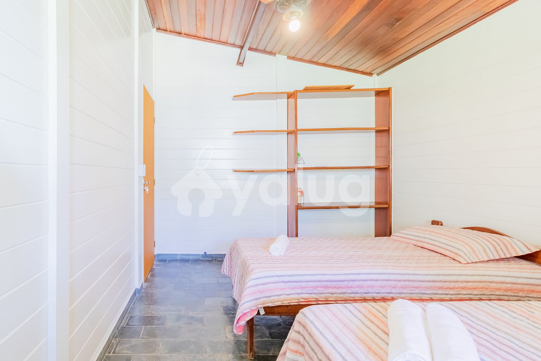 Quarto 3: 1 cama queen, 1 cama solteiro, ar condicionado split e ventilador;
