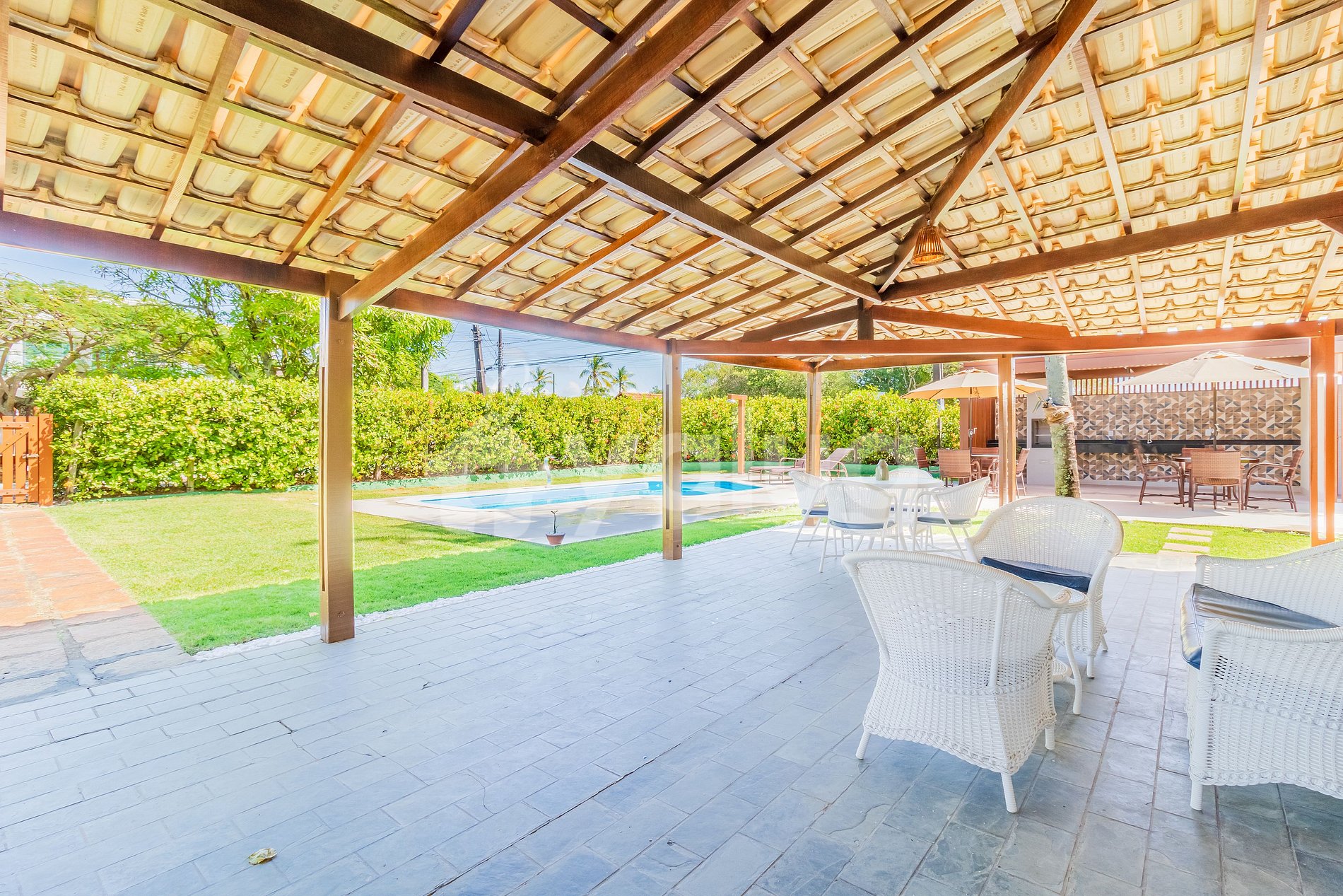 A casa fica em um terreno grande, com muito gramado e excelente área de lazer e piscina. O acesso à excelente praia fica a alguns minutinhos de caminhada pelo condomínio. Foi uma ótima estadia!