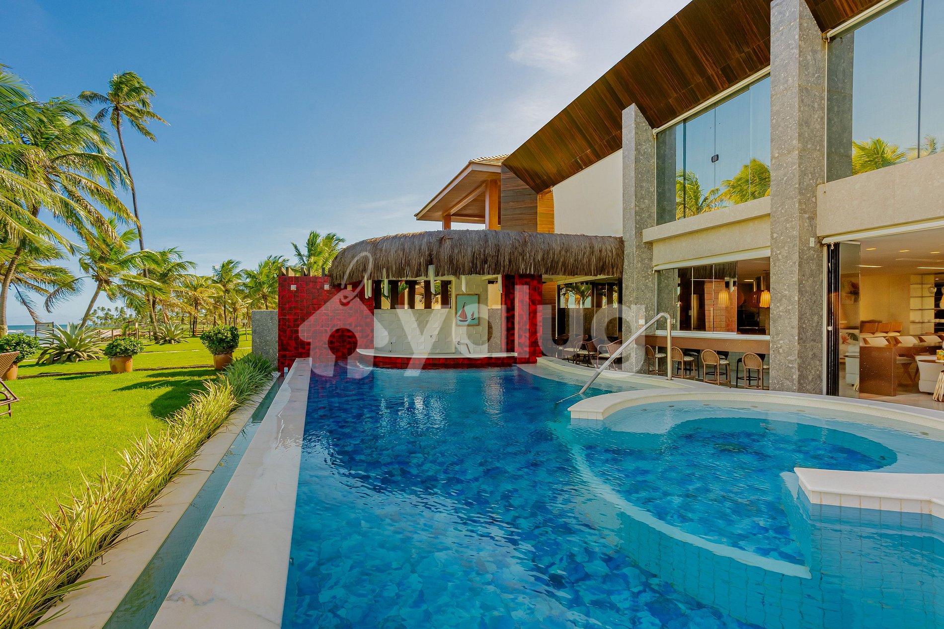 Vista privilegiada para o mar, acesso exclusivo à praia de Guarajuba e muito lazer te esperam nesta incrível mansão!