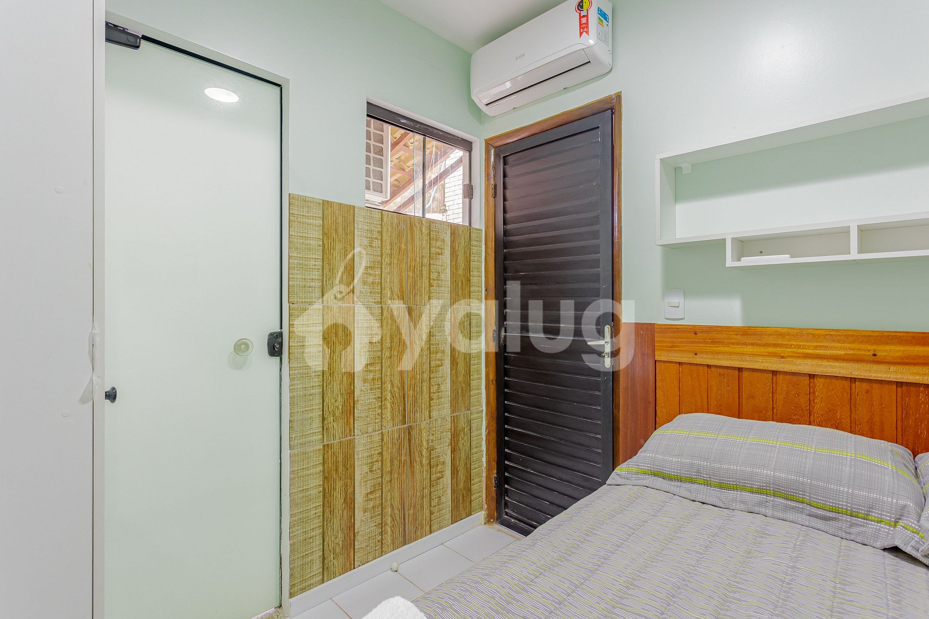 Suíte 1 (Térreo): 1 cama casal, ar condicionado split, cortina blackout e armário;