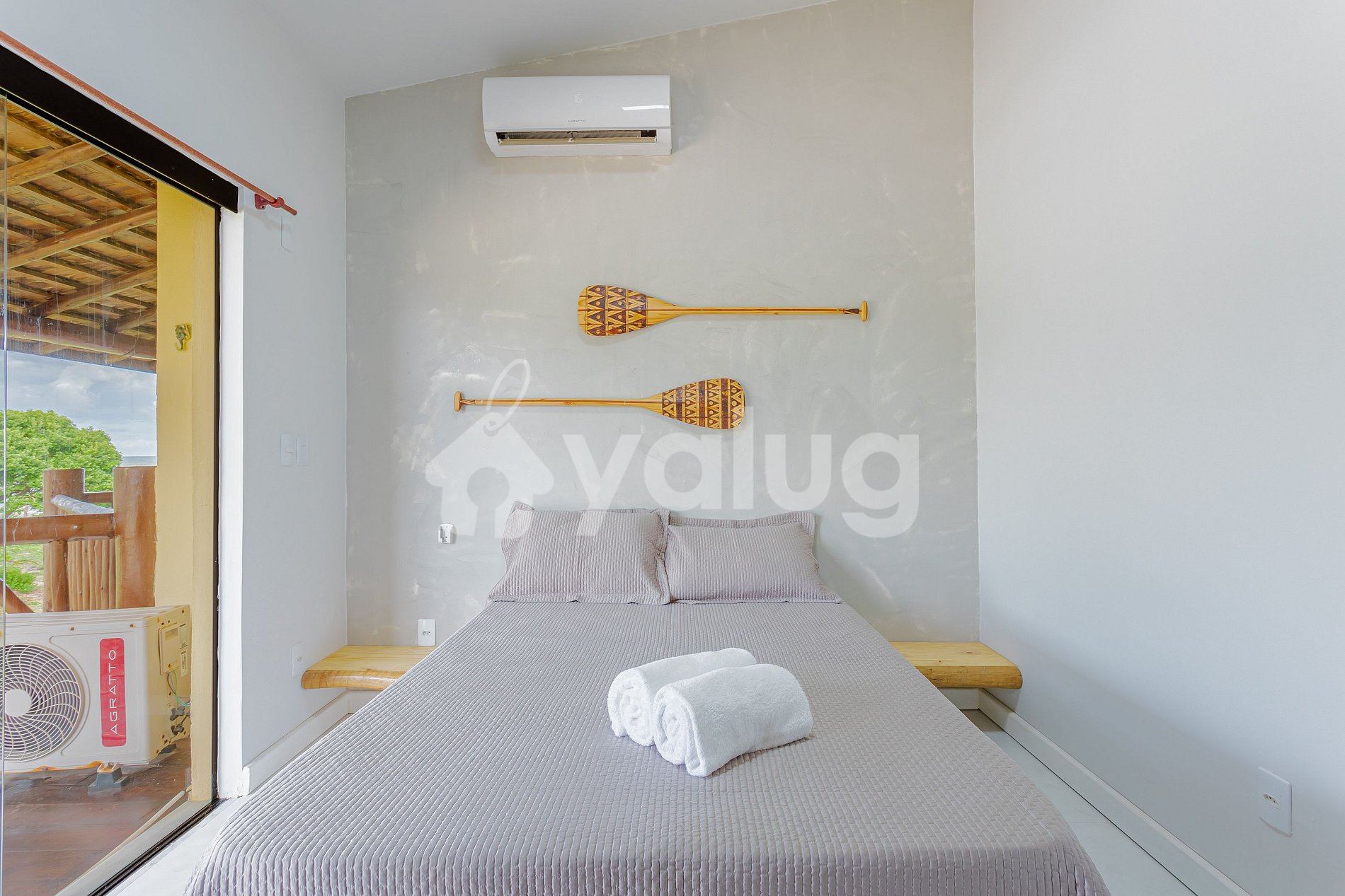 Suíte 2 (Superior): 1 cama casal, ar condicionado split, TV, cortina blackout e armário;
