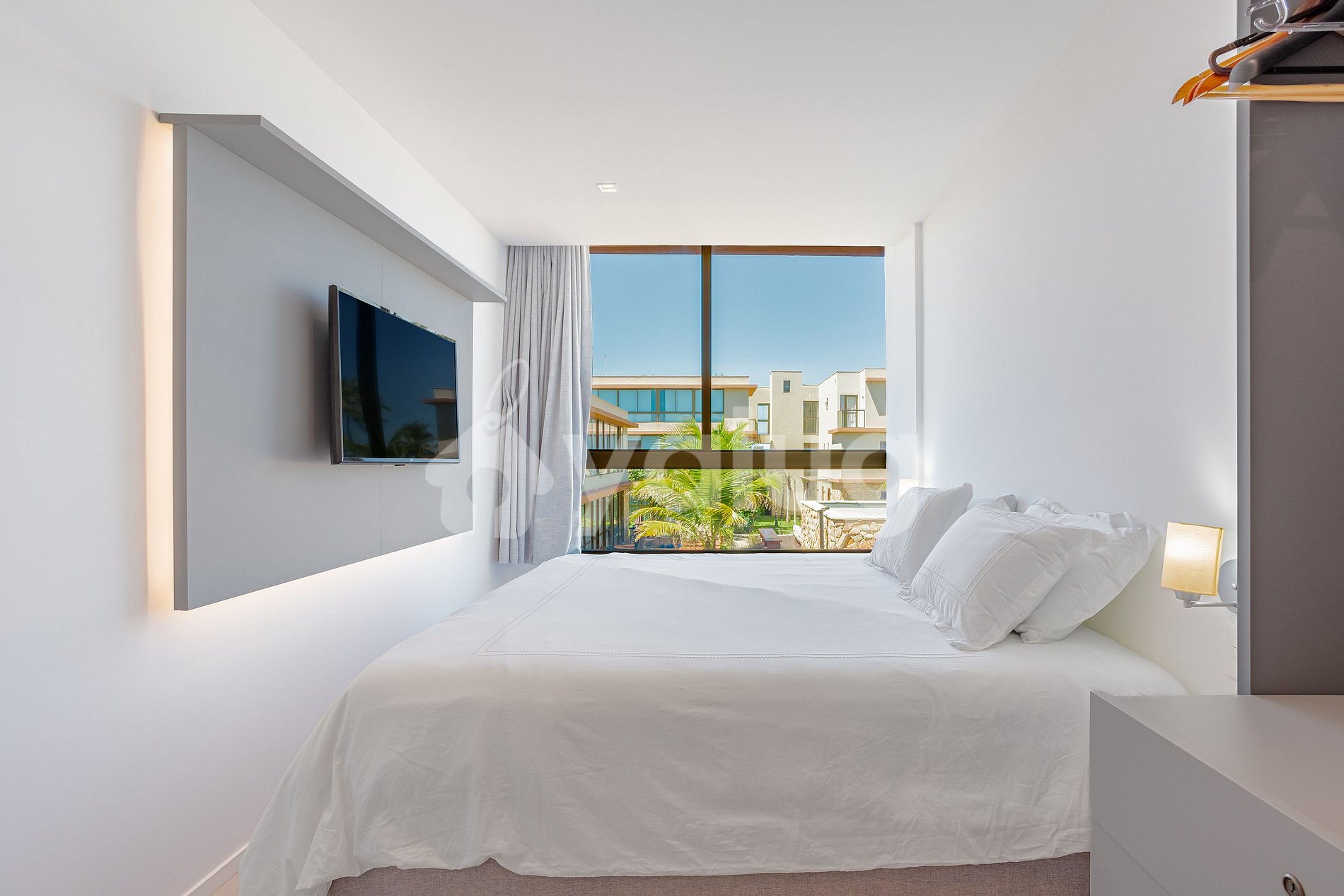 Suíte 1 (Superior):1 Cama King, TV, Ar Condicionado, Cortina, Black out, Armários;