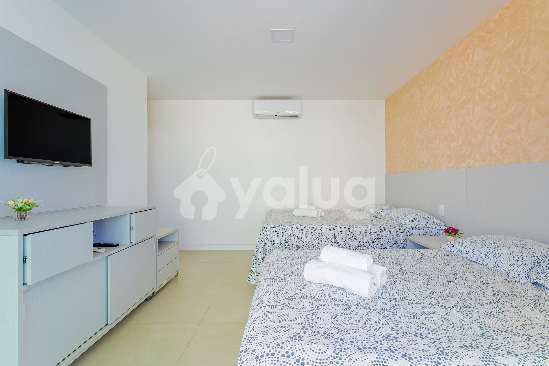 Suíte 2 (superior): 2 camas casal, ar condicionado split, cortina blackout e tv;