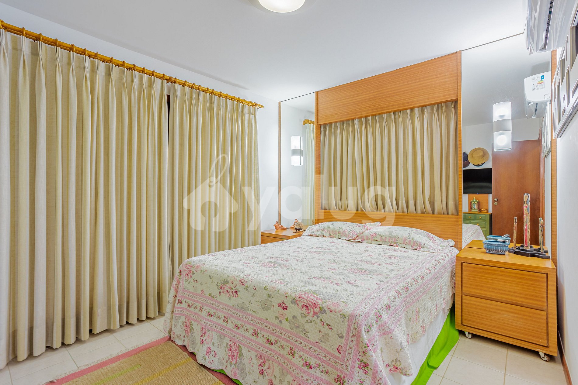 Suíte 1 (térreo): 1 cama queen, tv, ar-condicionado, cortina blackout, armário, varanda.