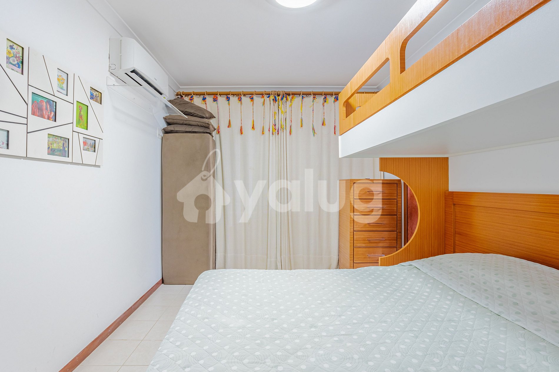 Suíte 1 (térreo): 1 cama queen, tv, ar-condicionado, cortina blackout, armário, varanda.