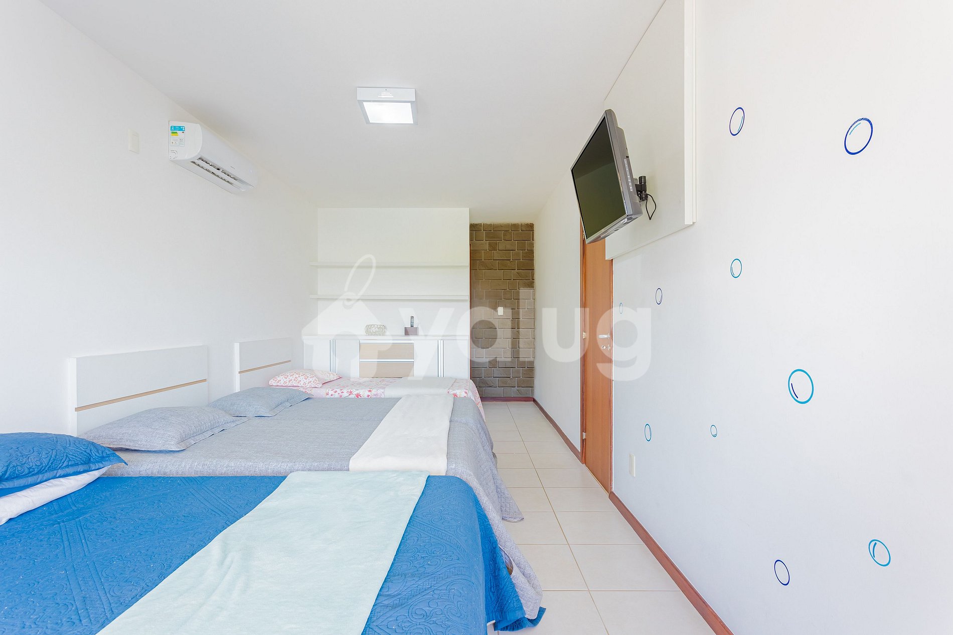 Suíte 2 (superior): tv, ar-condicionado, cortina blackout, armário, varanda, 1 cama casal, 3 camas solteiro.