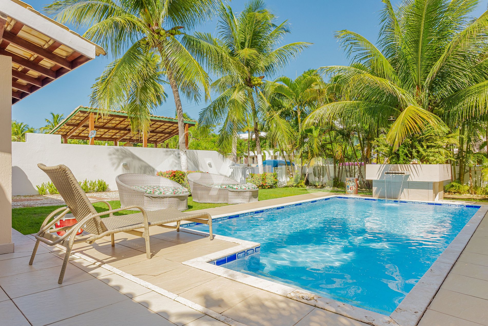 O imóvel possui piscina privada, churrasqueira, jardim, varanda, redes, área gourmet mobiliada e decorada, todos quartos mobiliados com armários e climatizados, cozinha completa com todos itens para sua estadia, sala aconchegante com sofá e poltronas.