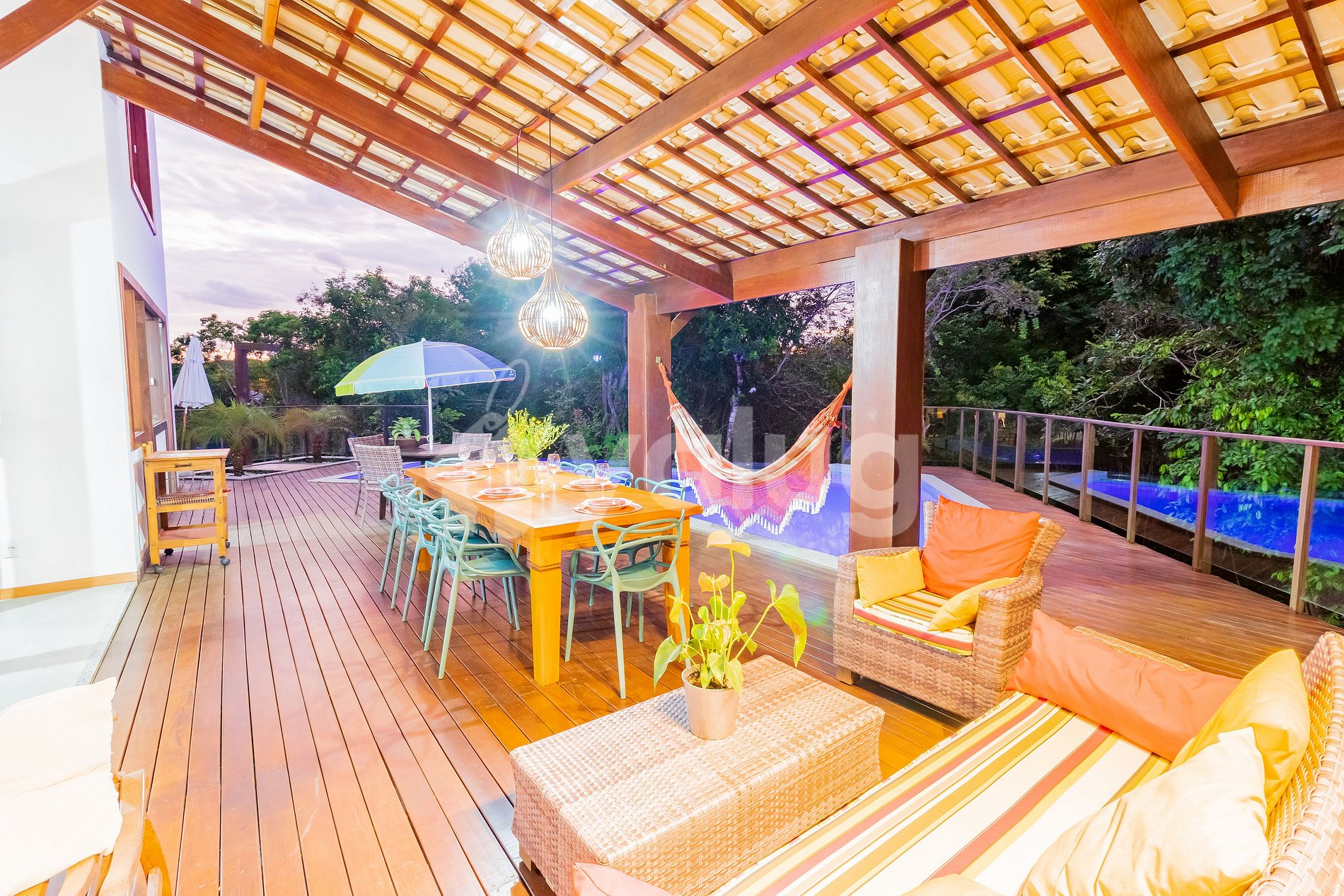 Propriedade de alto padrão, localizada em Praia do Forte, oferece uma excelente estrutura com toda comodidade para sua melhor temporada na região. A casa acomoda até 15 pessoas, e conta com 5 suítes com 1 dependência, sendo 2 no andar térreo, todos com ar condicionado tipo split, ampla sala com vista para piscina e mesa de jantar para 10 pessoas, cozinha americana completa e integrada à sala.