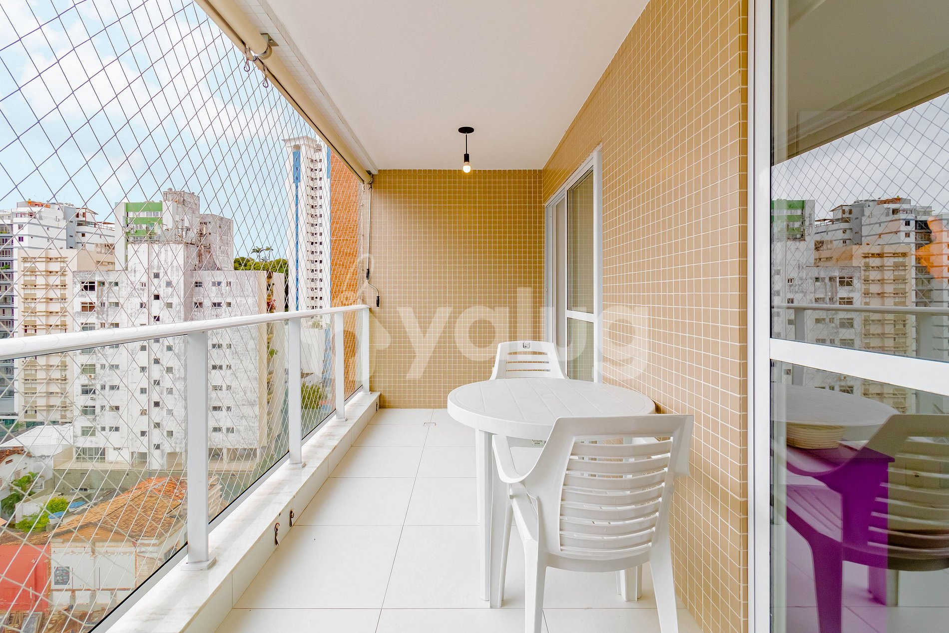 Localizado no Residencial Mário Quintana no 8º andar, a 550m da Praia do Porto da Barra, meu espaço é composto por 1 suíte climatizada, Wi-fi, Smart TV, sala de estar, cozinha integrada e varanda com vista para a cidade.