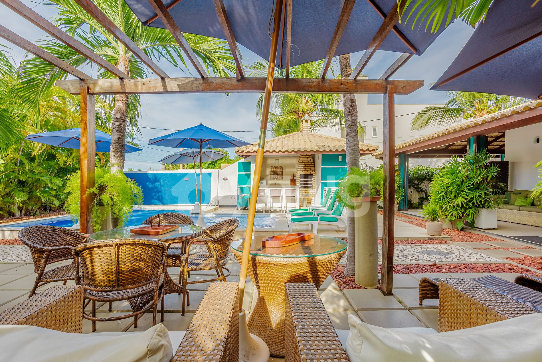 Excelente casa 8 quartos, localizada no Condomínio Mar Azul, a apenas 50m da praia e das melhores barracas de praia (Prefeitinho e Carlinhos) e com ótima estrutura. Além disso, a casa dispõe de uma ampla área externa com piscina, jardim e área gourmet com churrasqueira.