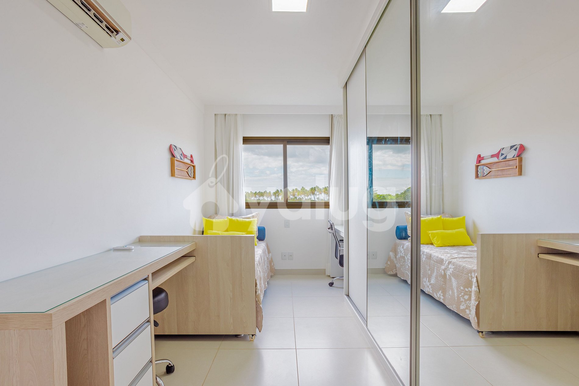 Suíte 2: Ar-condicionado split, cortina blackout, armários, ventilador, 1cama solteiro com auxiliar, 1 colchão solteiro avulso.