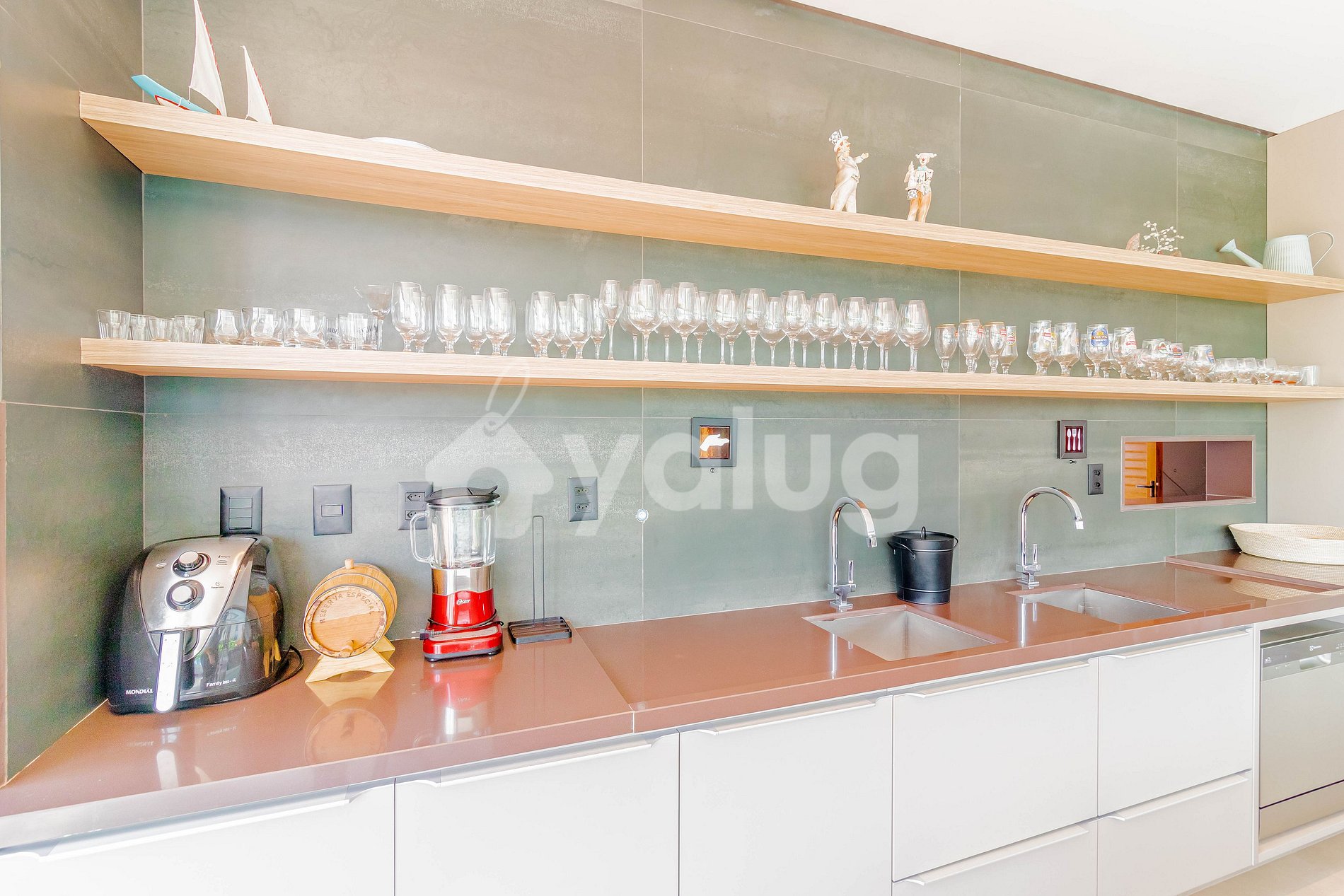 Acomoda até 8 pessoas e conta com 4 quartos (3 suítes, sendo uma no andar térreo), sala de estar aconchegante com Smart Tv e cozinha completa, integrados e com acesso direto à área externa, com piscina, jardim e churrasqueira.