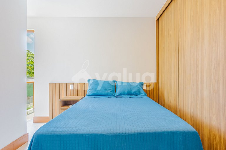 Suíte 2 (térreo): Ar-condicionado split, cortina blackout, armários, 1 cama casal;
