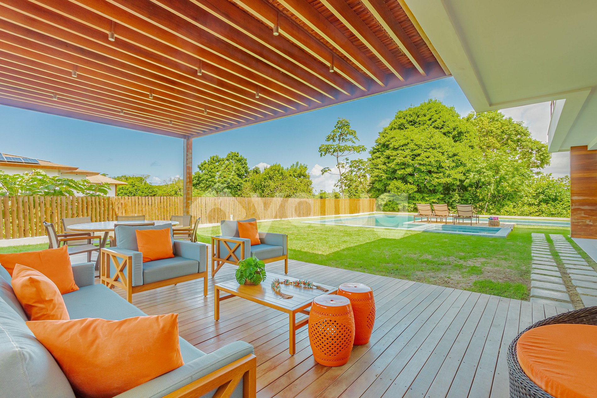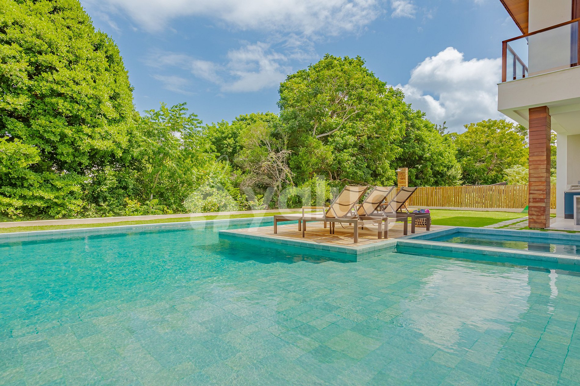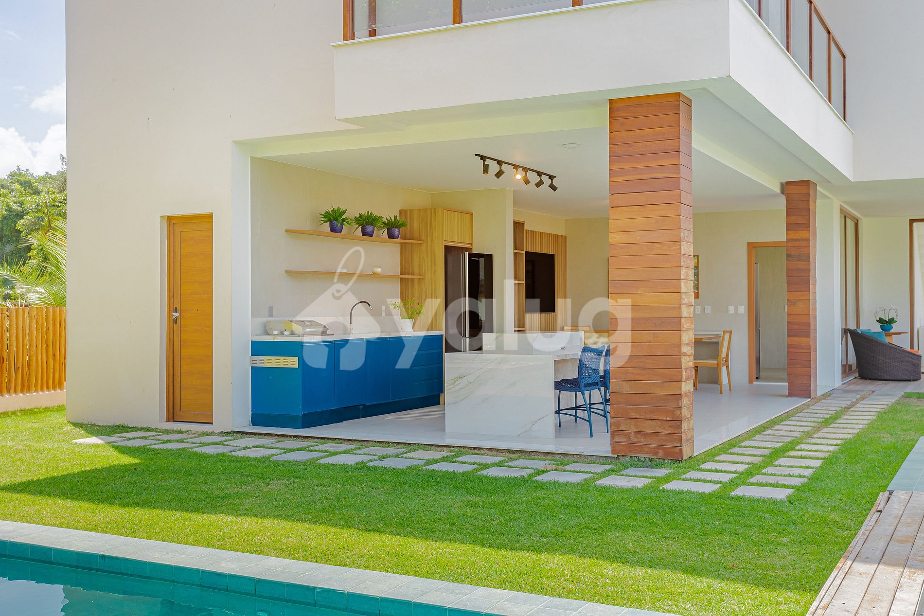 Excelente área gourmet com jardim, churrasqueira, piscina, móveis externos e muito mais!