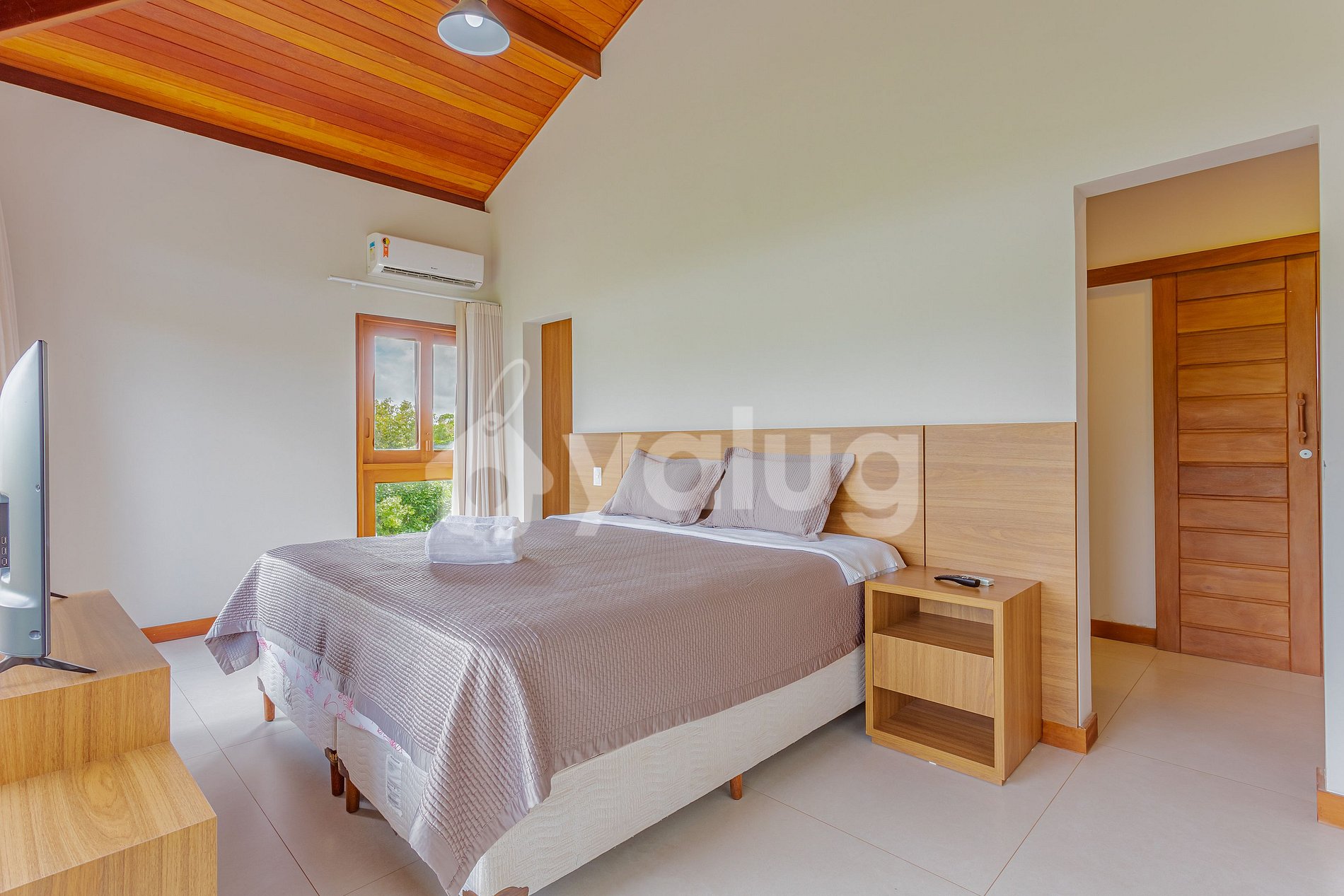 Suíte 1 (térreo): 1 cama king, ar condicionado split, cortina blackout e armário;